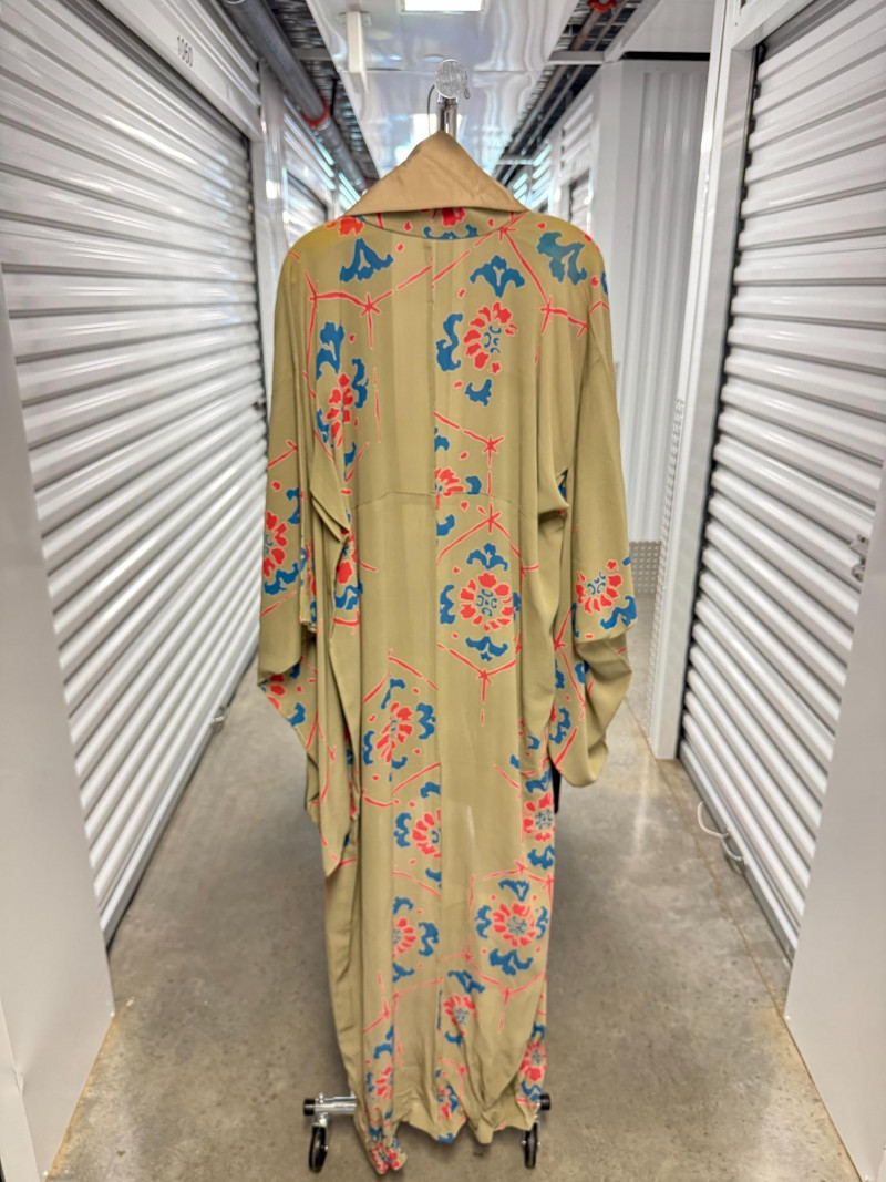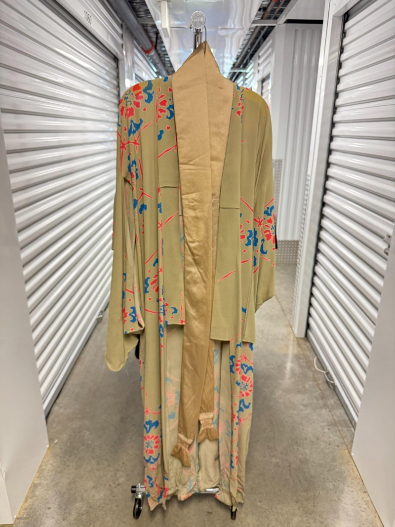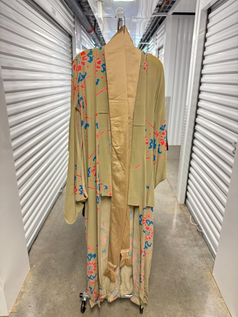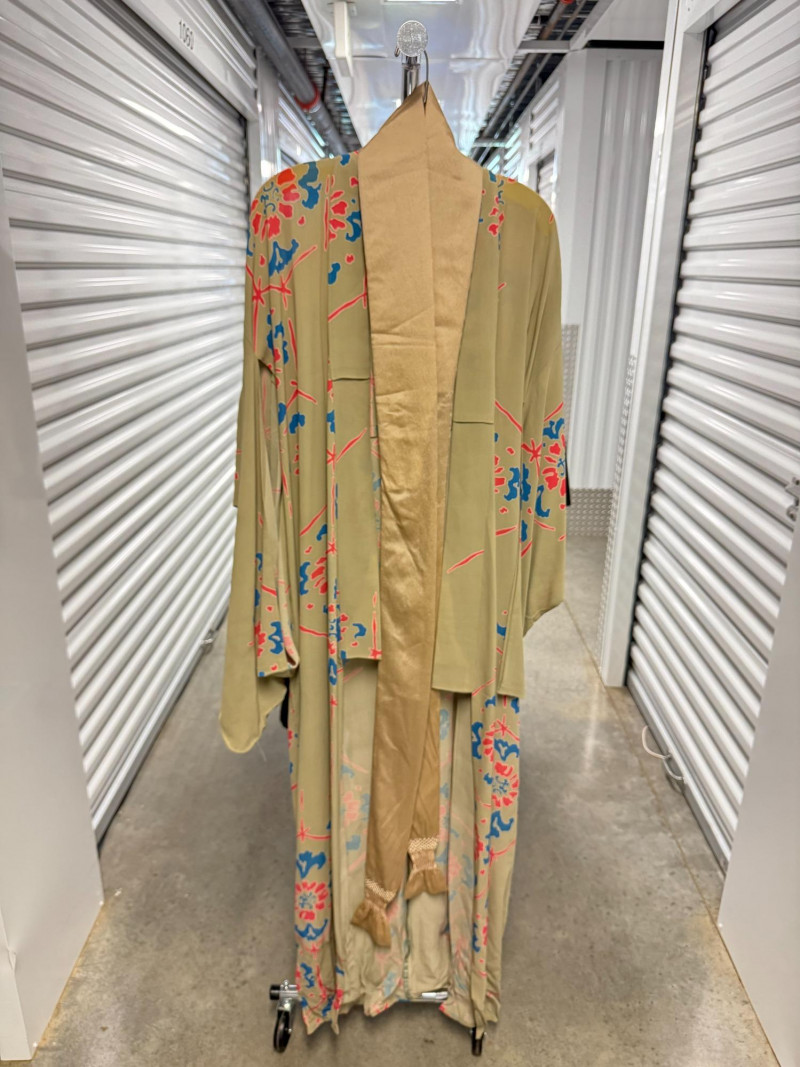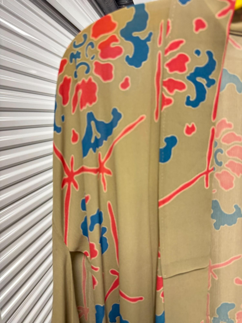 Vintage Beige Kimono w/ Multicolor Floral Print – Made in Japan. No size marked – please review photos for fit.