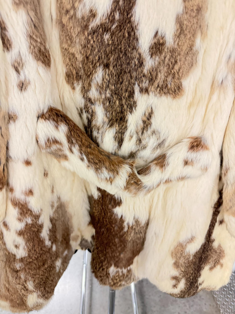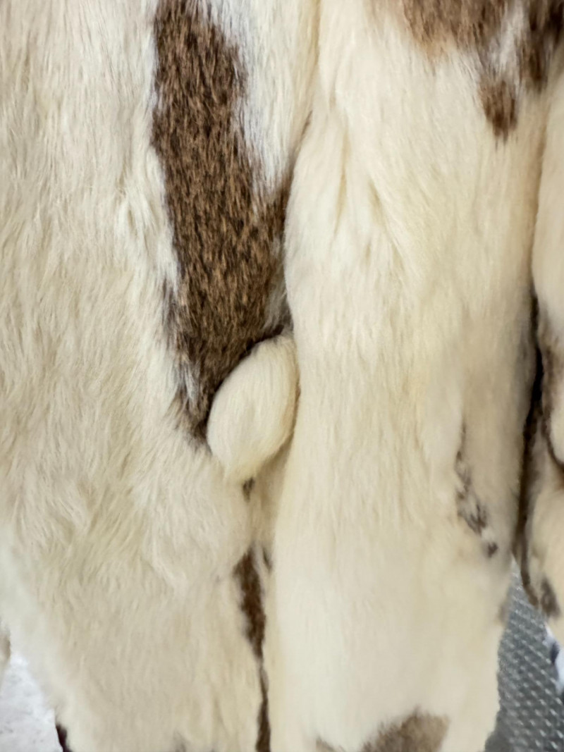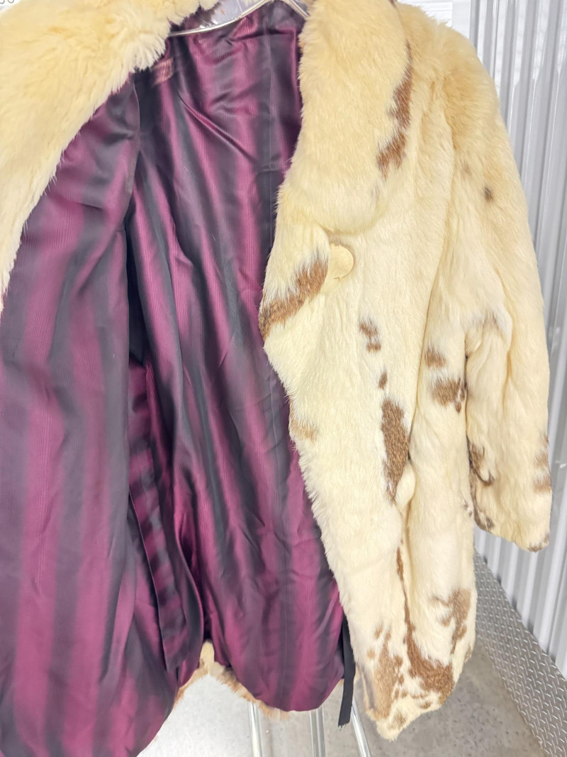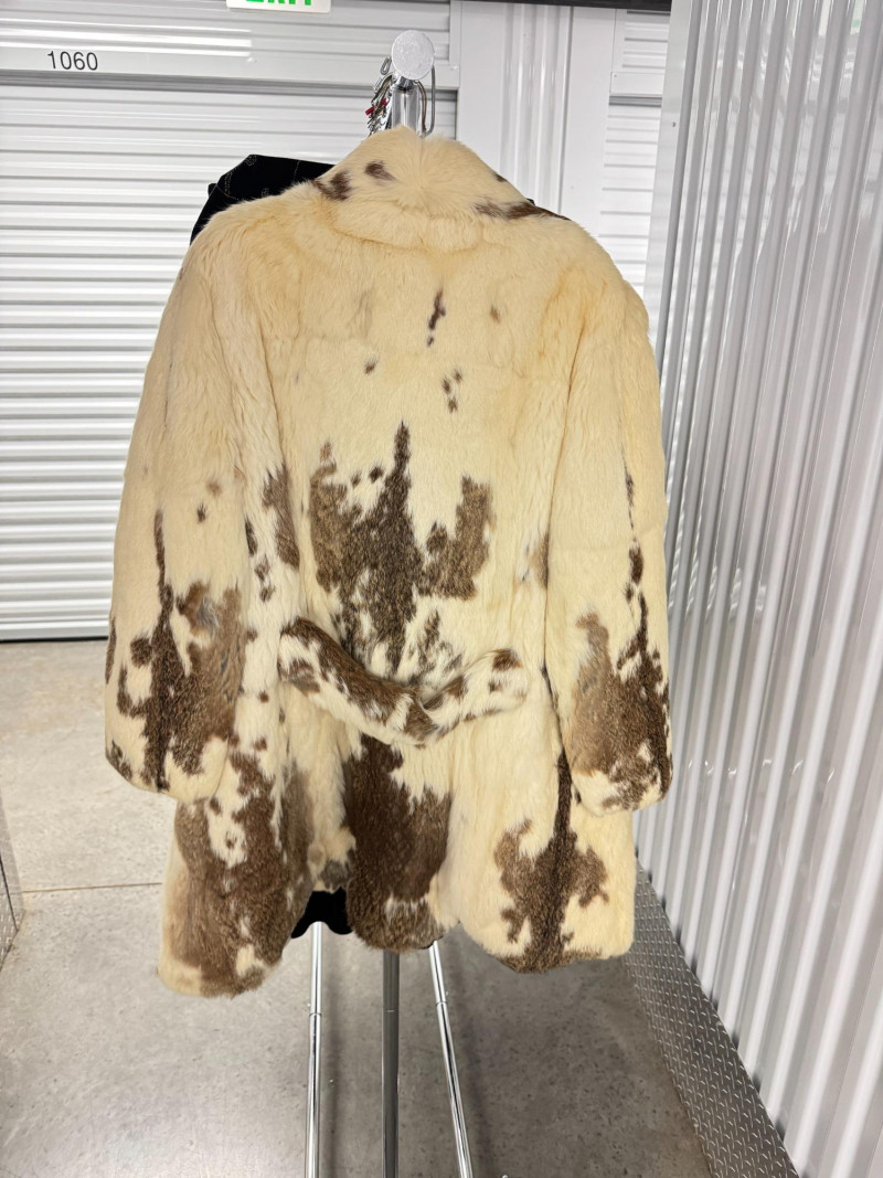White Beige Fur Coat w/ Brown Pattern – Likely Large.