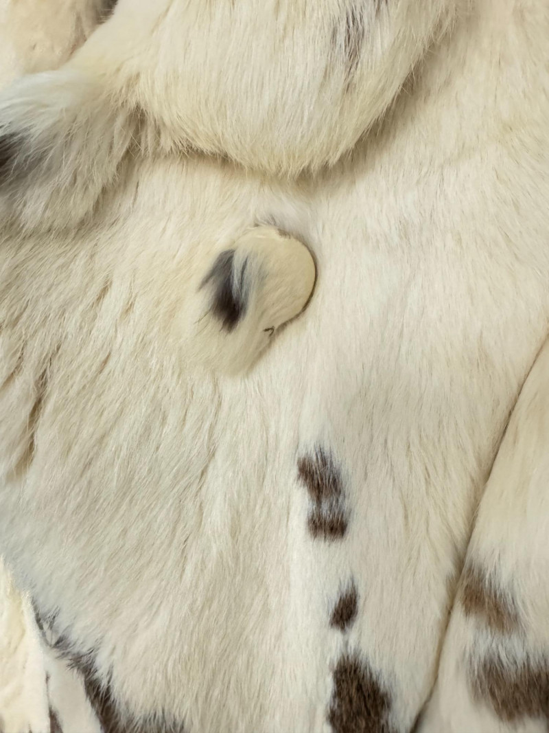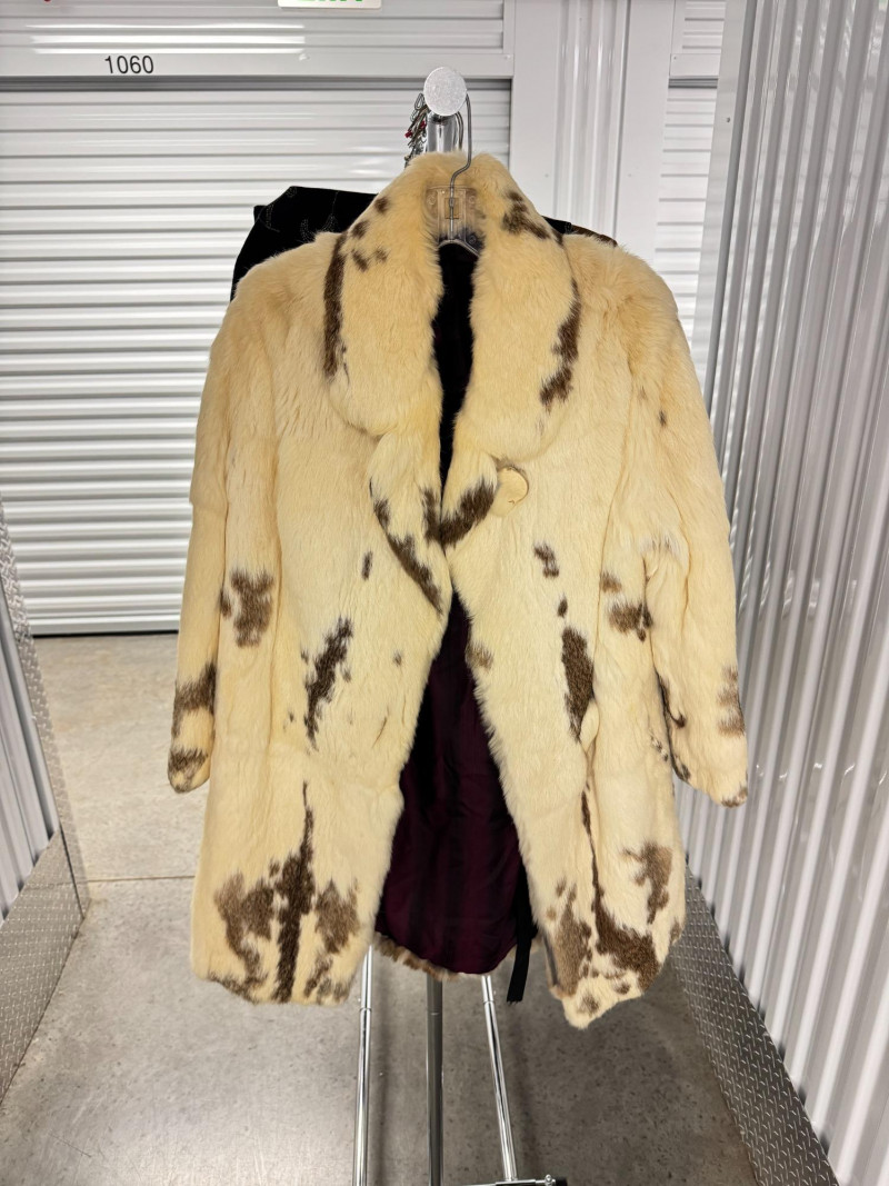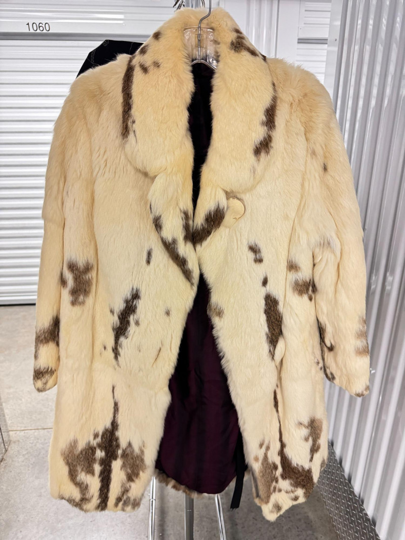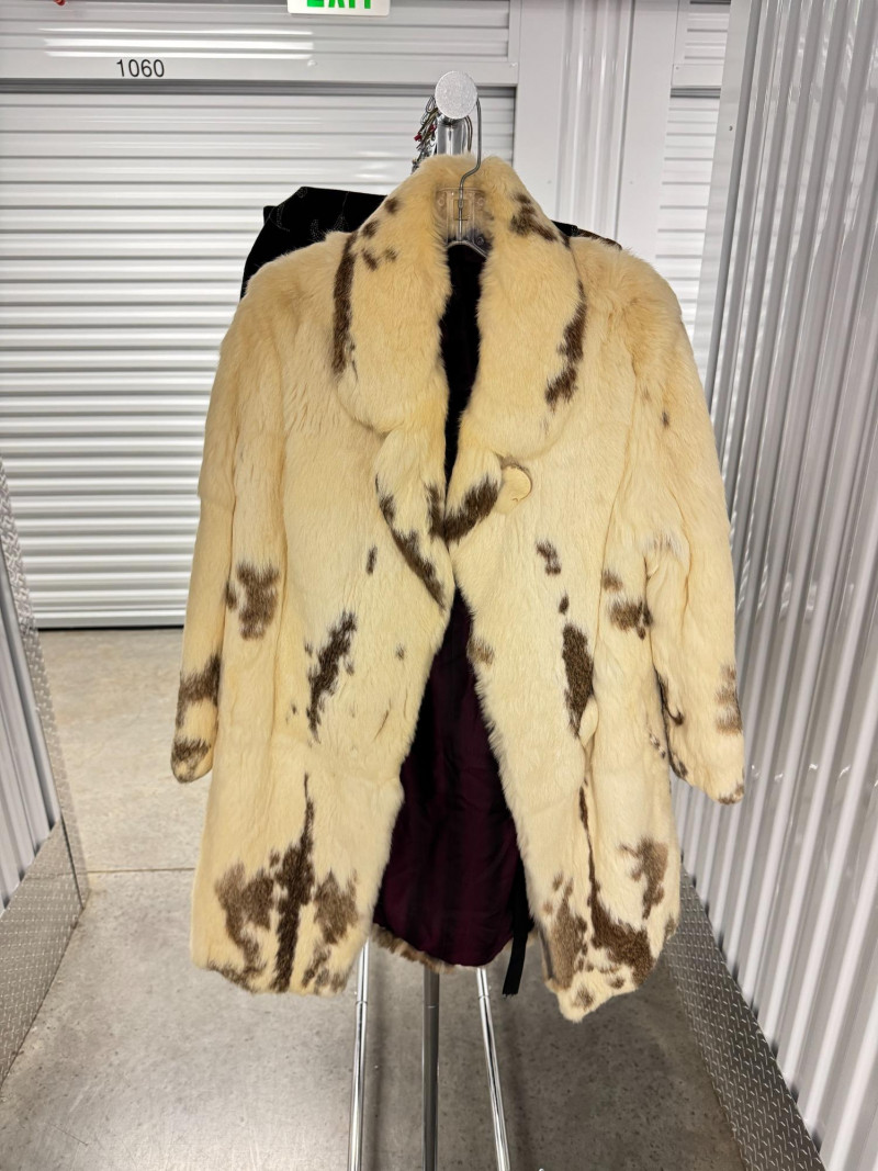 White Beige Fur Coat w/ Brown Pattern – Likely Large.