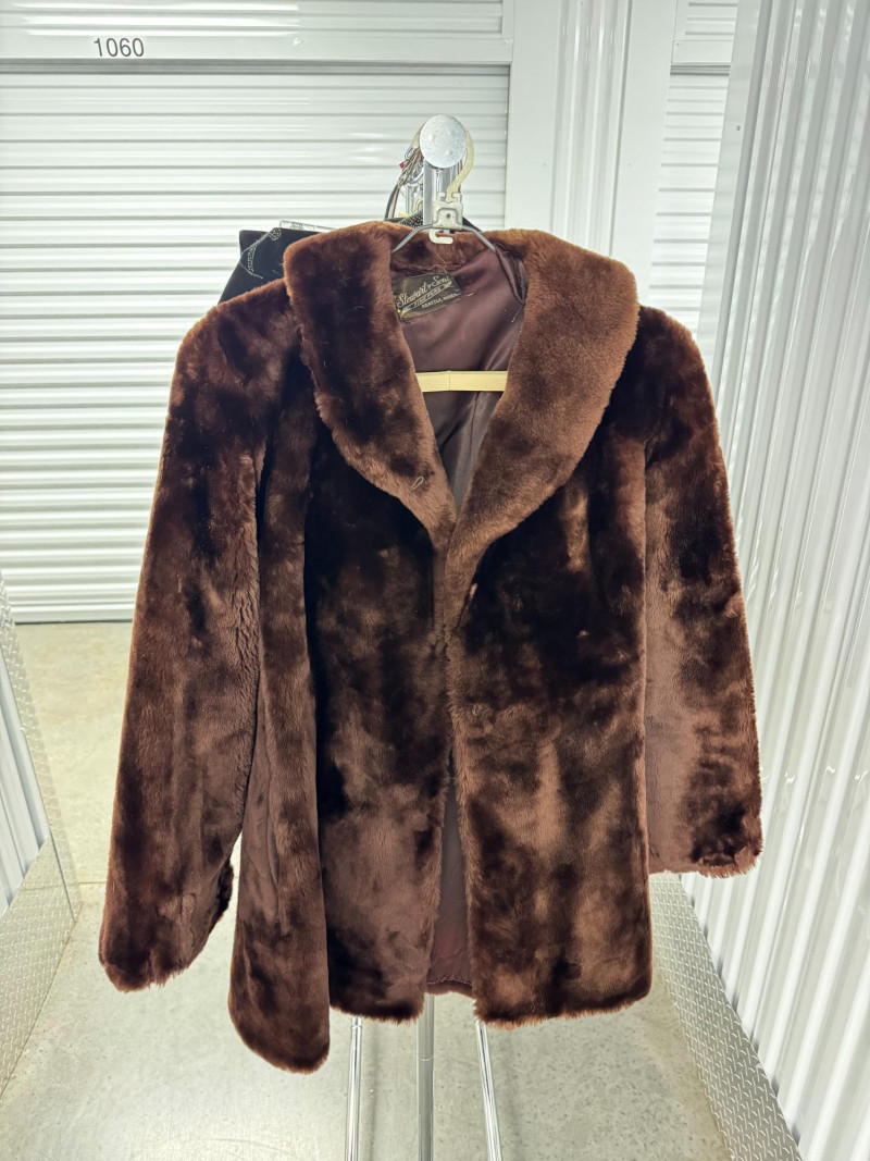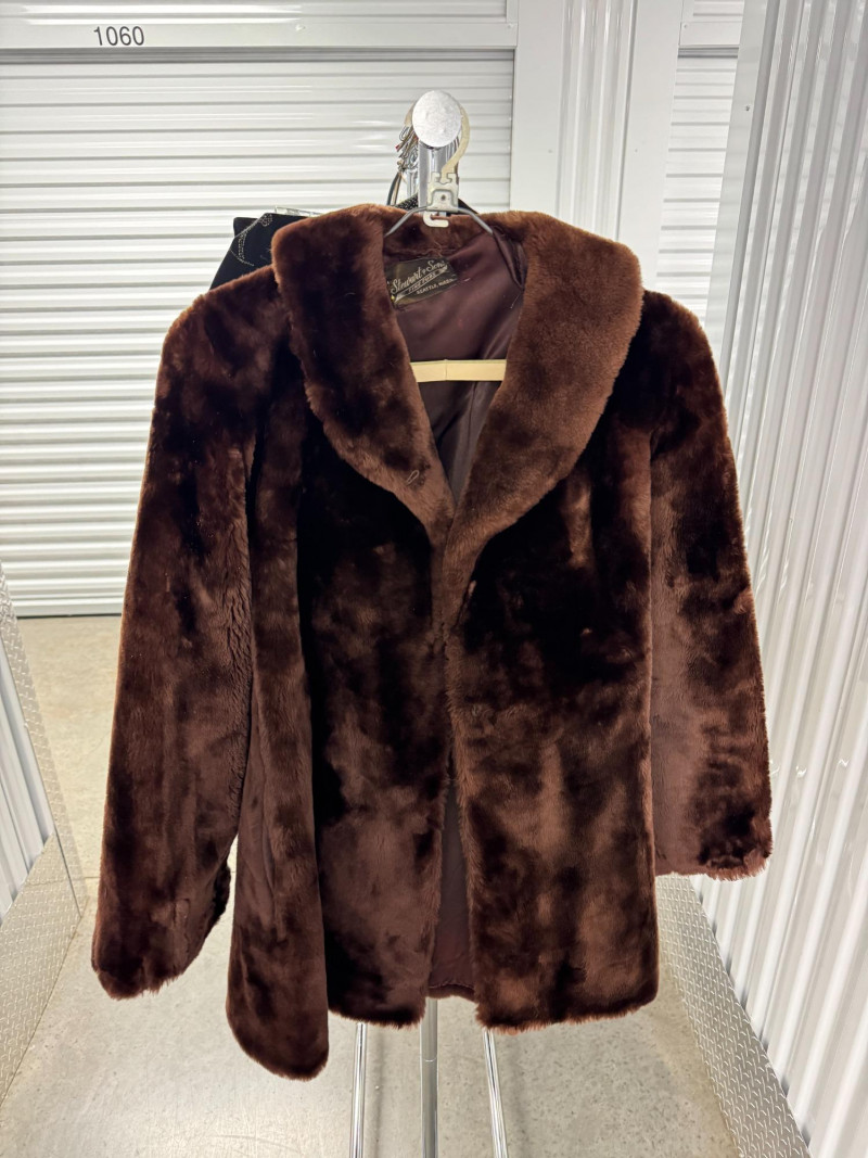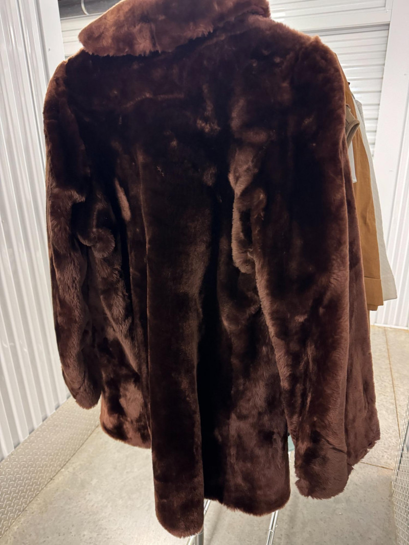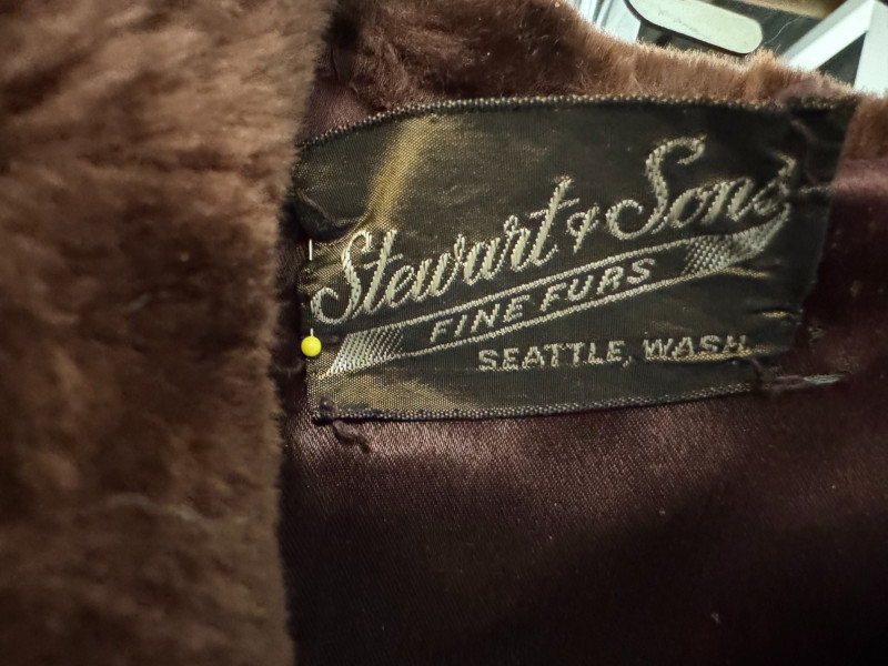 Stewart & Sons Fine Furs Seattle – Maroon Brown Fur Coat, Likely Large.