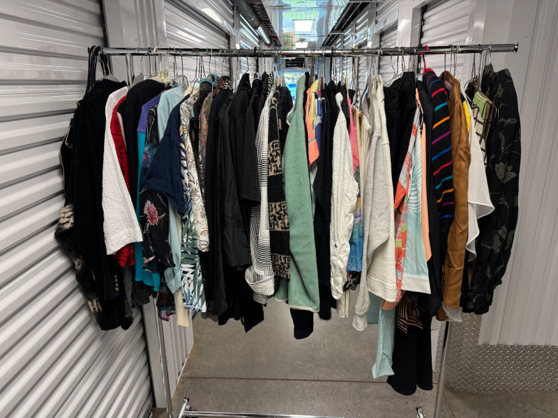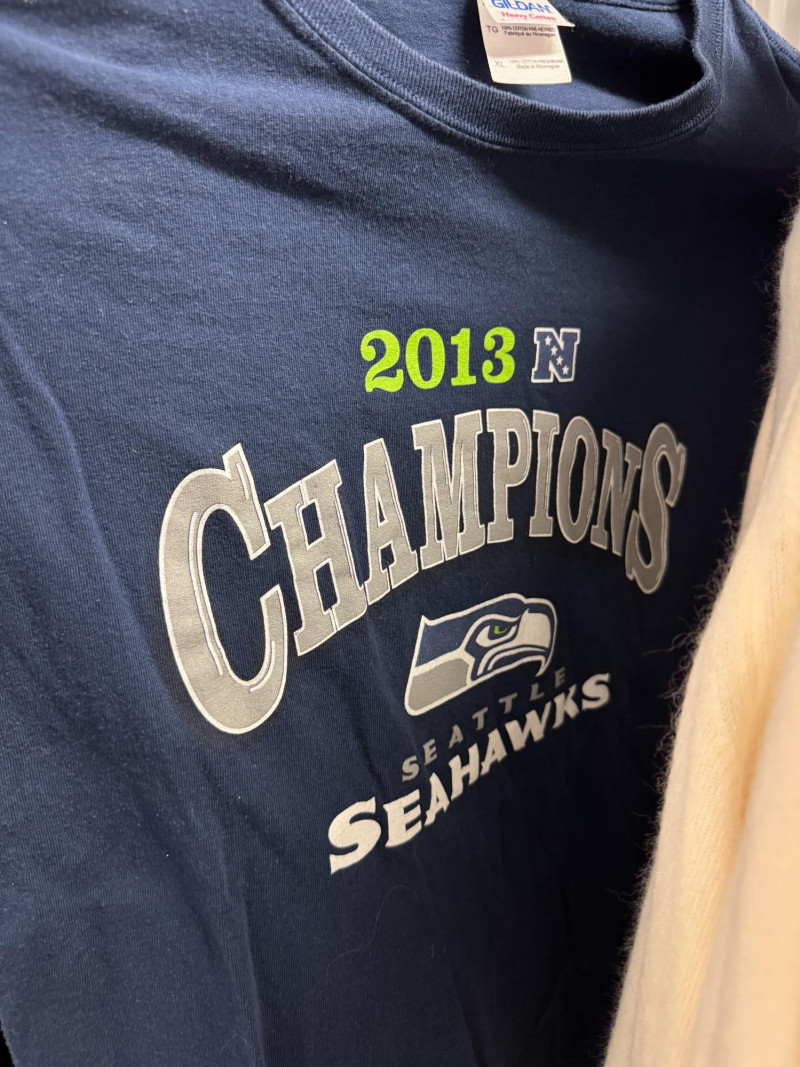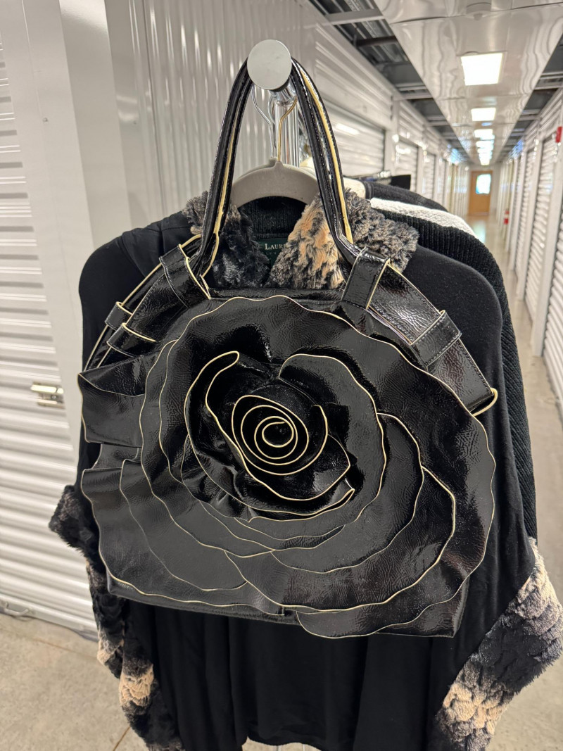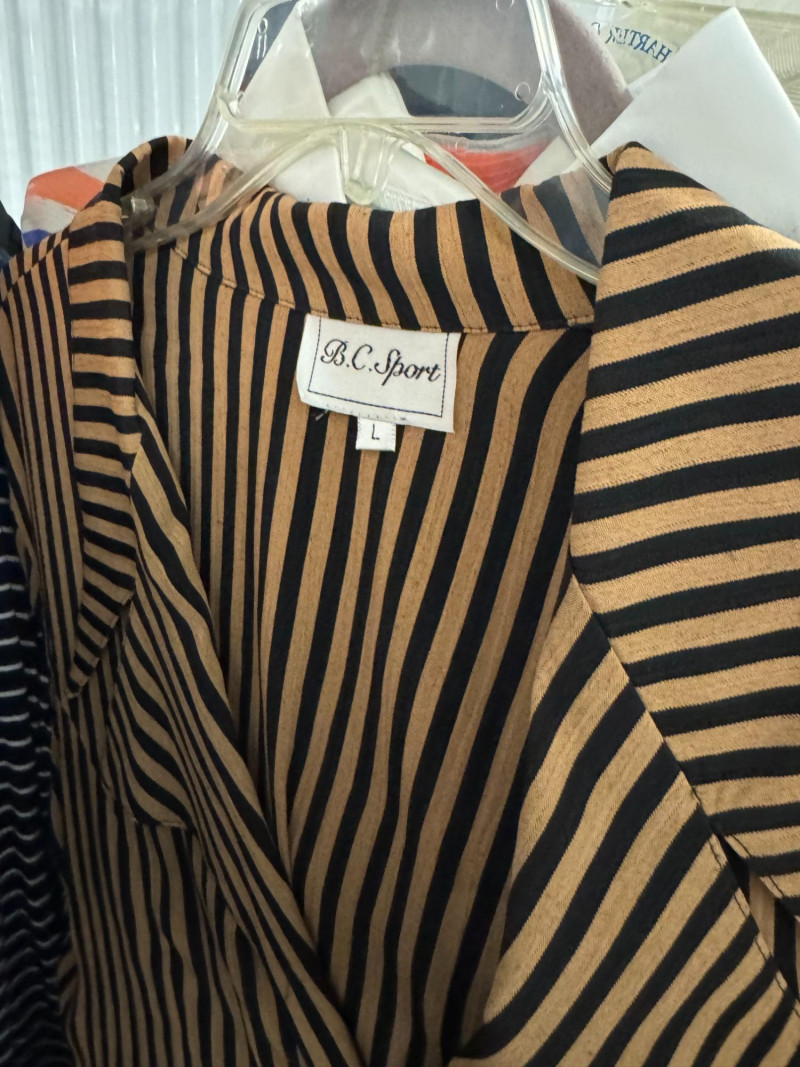 Assorted Women’s Clothing – Ralph Lauren, Bloomingdale’s Cashmere + Assorted women’s clothing, mostly size Large, with a few XL pieces. Includes brands such as: Ralph Lauren (Lauren line) Bloomingdale’s Cashmere Copper River Fleece (Cordova, Alaska) Seattle Seahawks 2013 Champions Tee Variety of styles: jackets, sweaters, blazers, casual tops, dresswear, and outerwear. Bonus: includes a large black floral applique handbag.