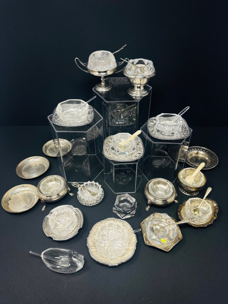Lot # 234 - Feeling Salty? A Sterling Spread of Mini Salt Cellars & Spoons, 395.8g