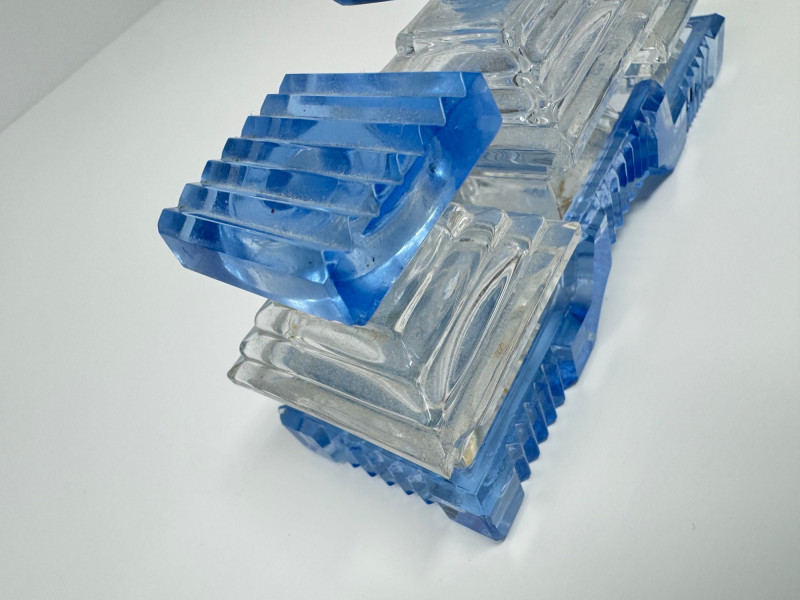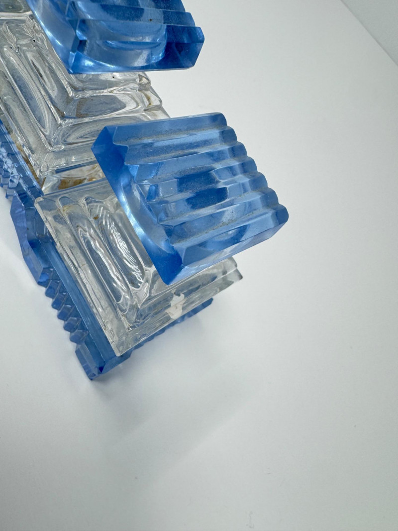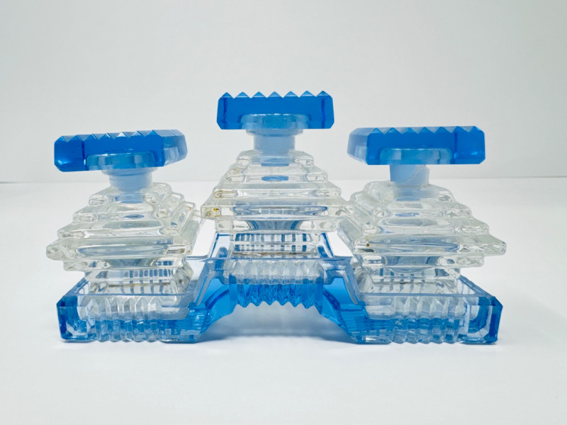 Lot # 240 - Czech Crystal Perfume Bottle Trio w/ Blue Geometric Holder