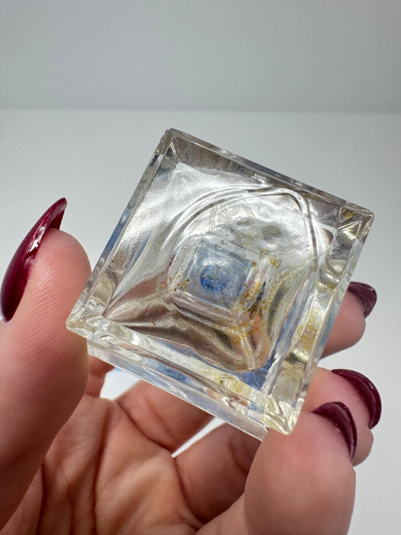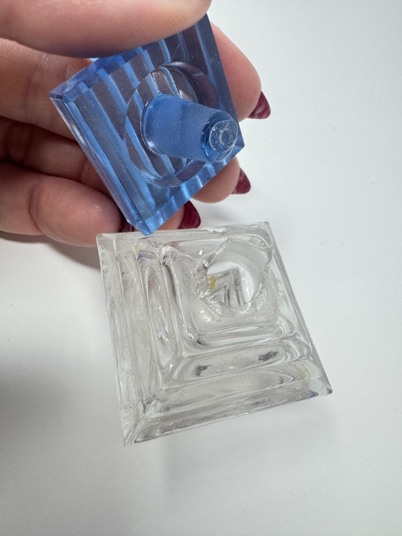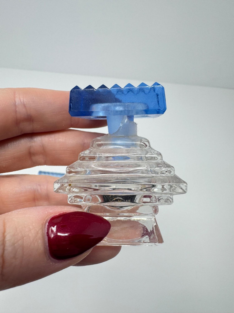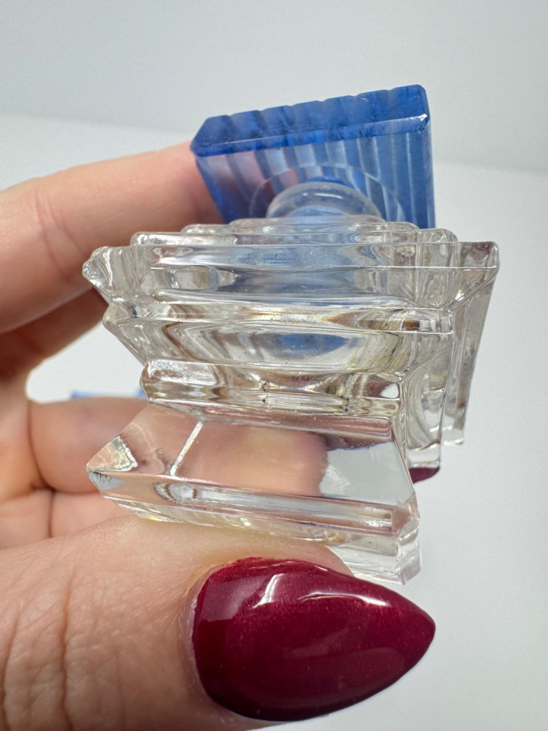Czech Crystal Perfume Bottle Trio w/ Blue Geometric Holder.
