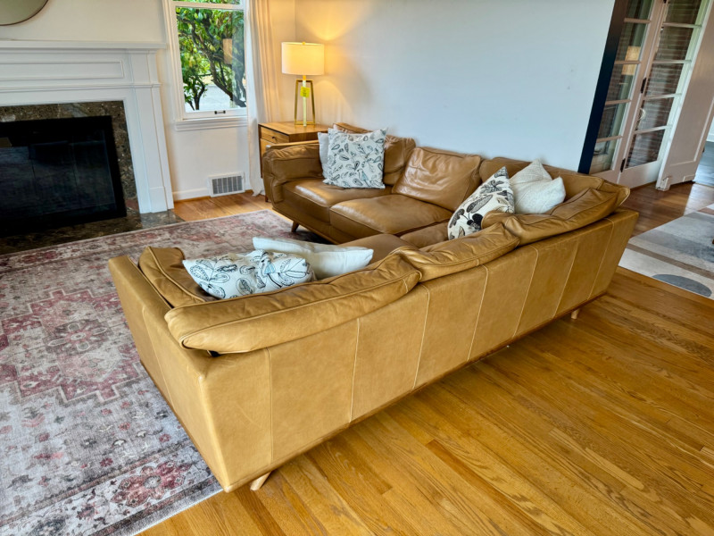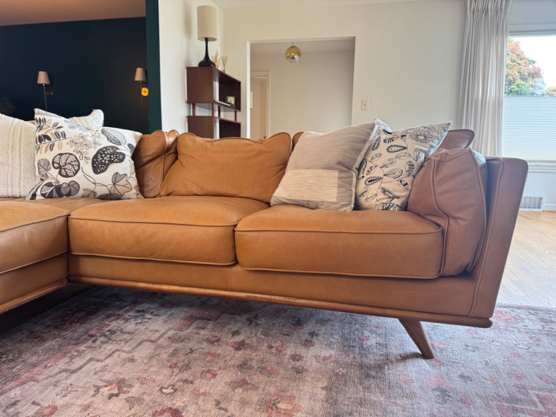 Lot # 1 - Joybird MCM Style Leather Sectional Couch w/ Wood Base & Tapered Legs