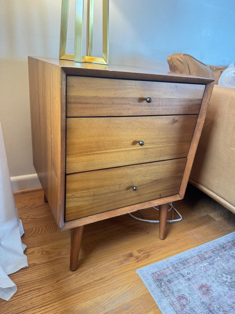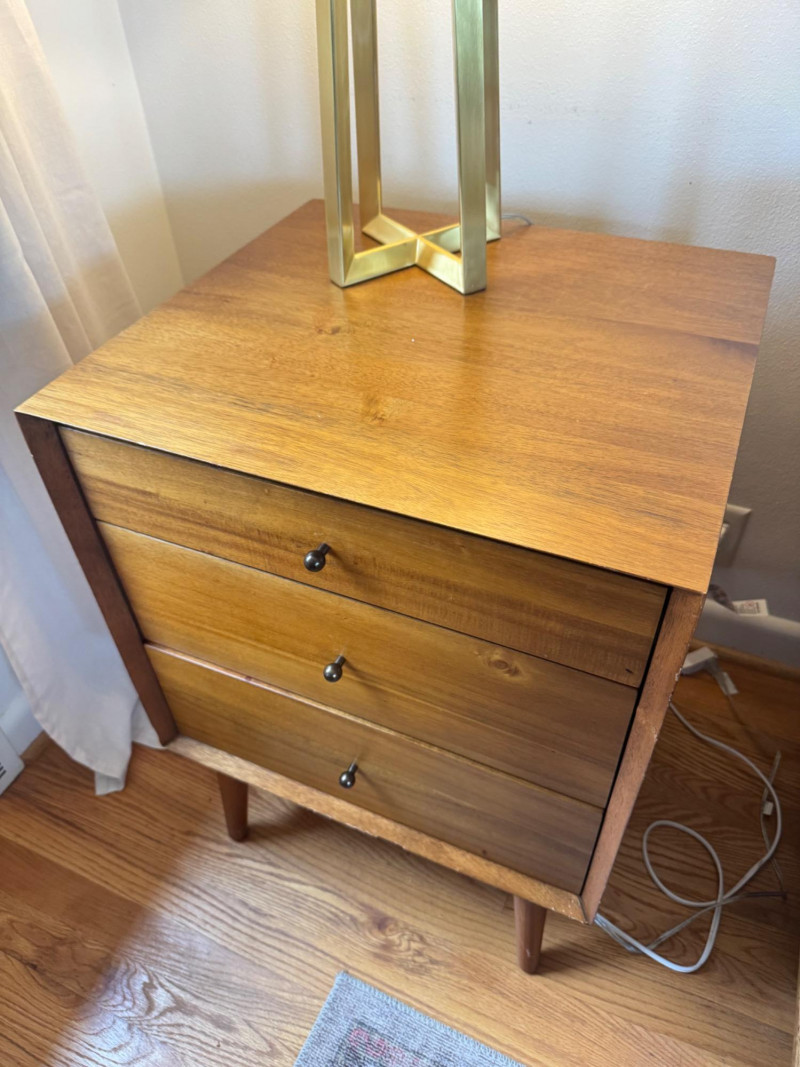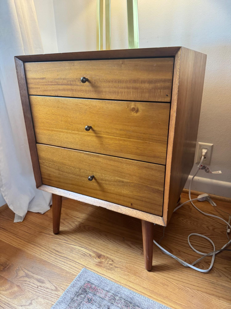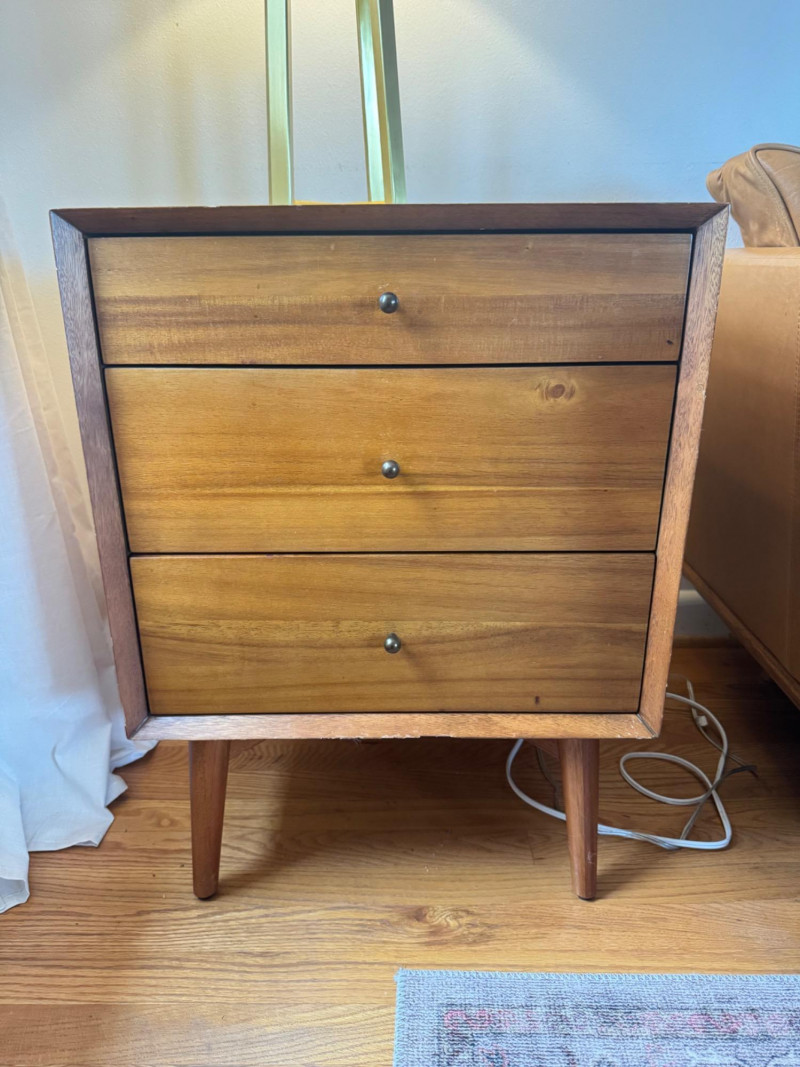 Mid-Century Modern Style 3-Drawer Side Table w/ Tapered Legs.