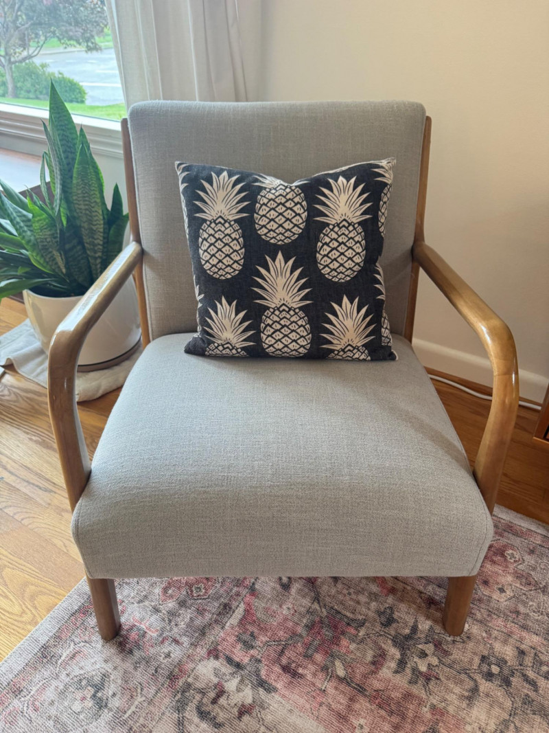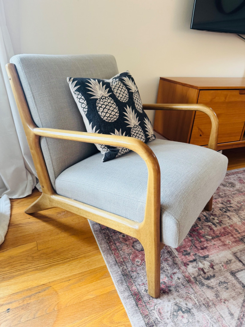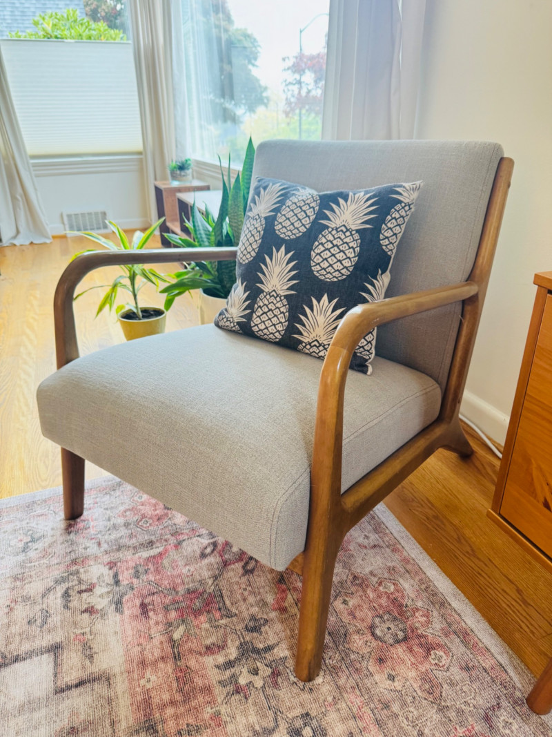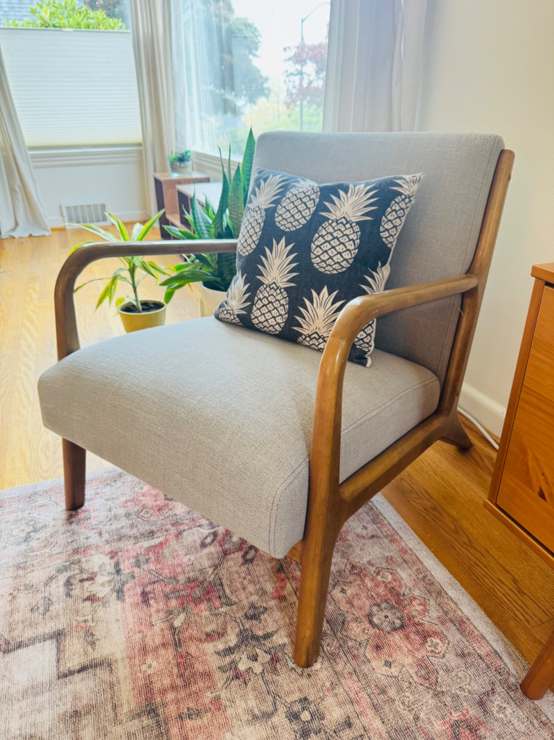 Nordic Style Arm Chair - Wood Frame, Upholstered Seat & Pillow #2.