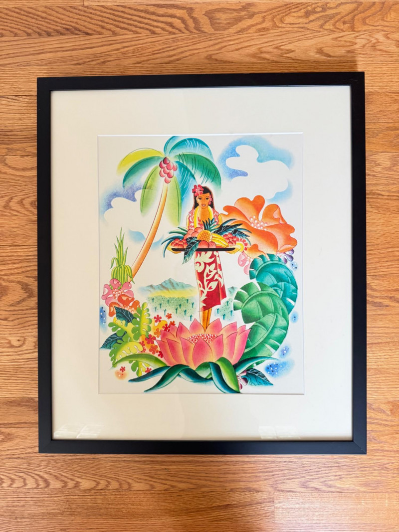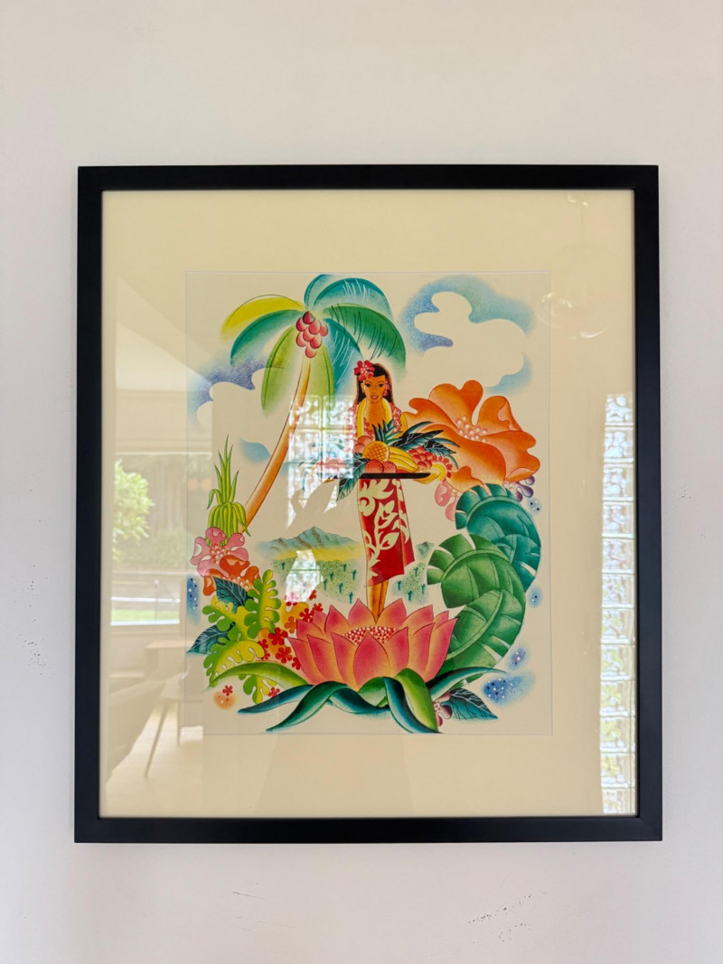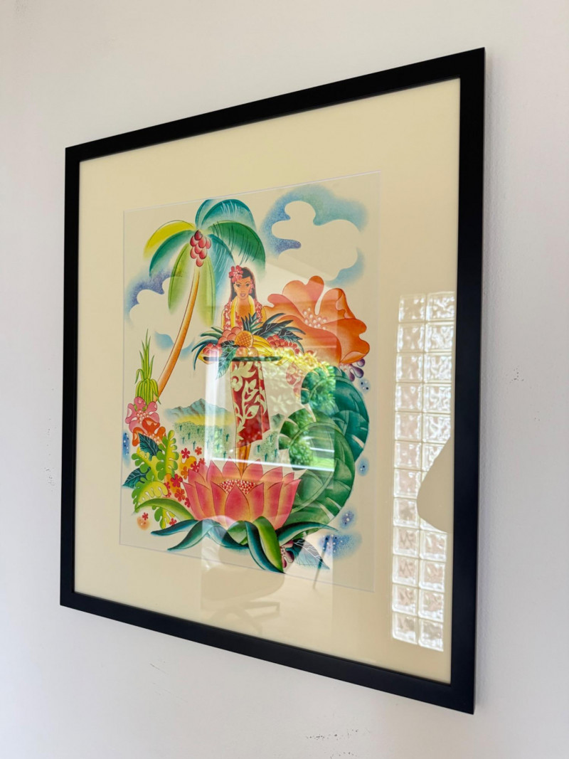 Lot # 14 - Framed Tropical Hula Girl Print - Colorful Tropical Scene