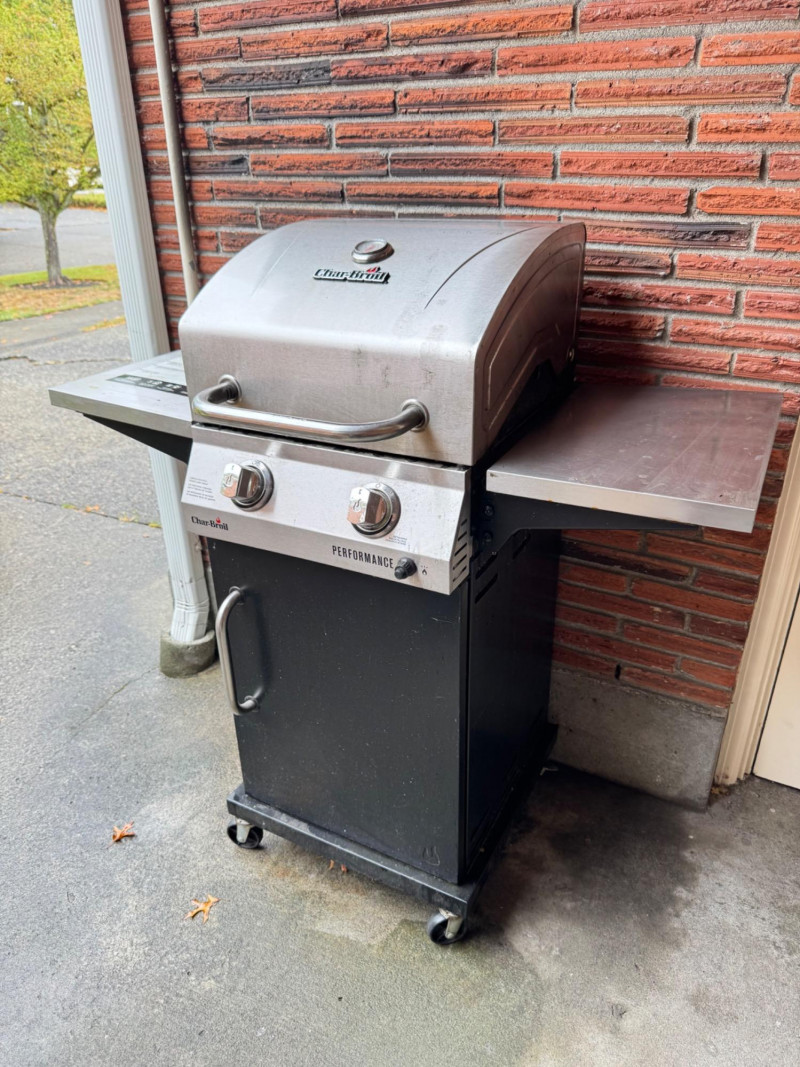 Char-Broil Performance 2-Burner Propane Gas Grill. 44” wide x 20” deep x 44” tall