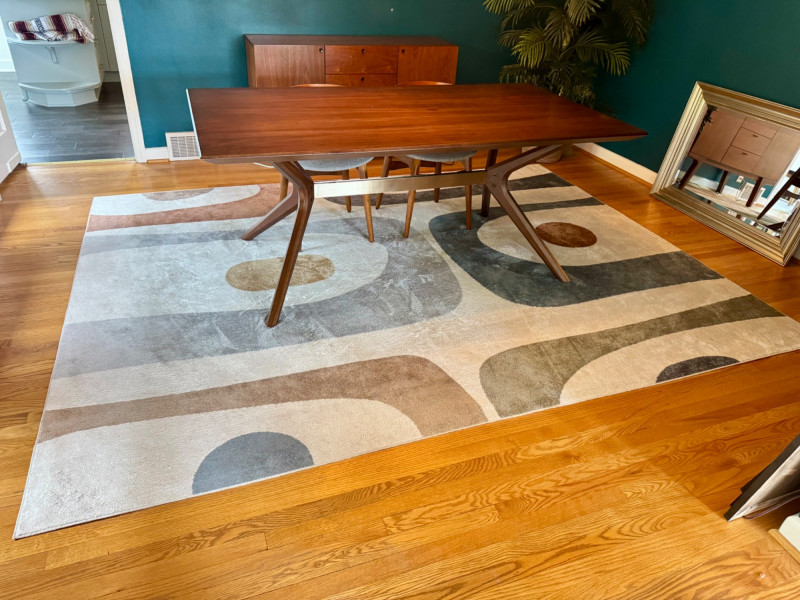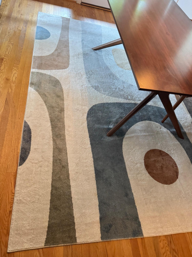 Mid-Century Modern Style Polyester Area Rug - Turkey. Dimensions: Approx. 7’10” x 10'