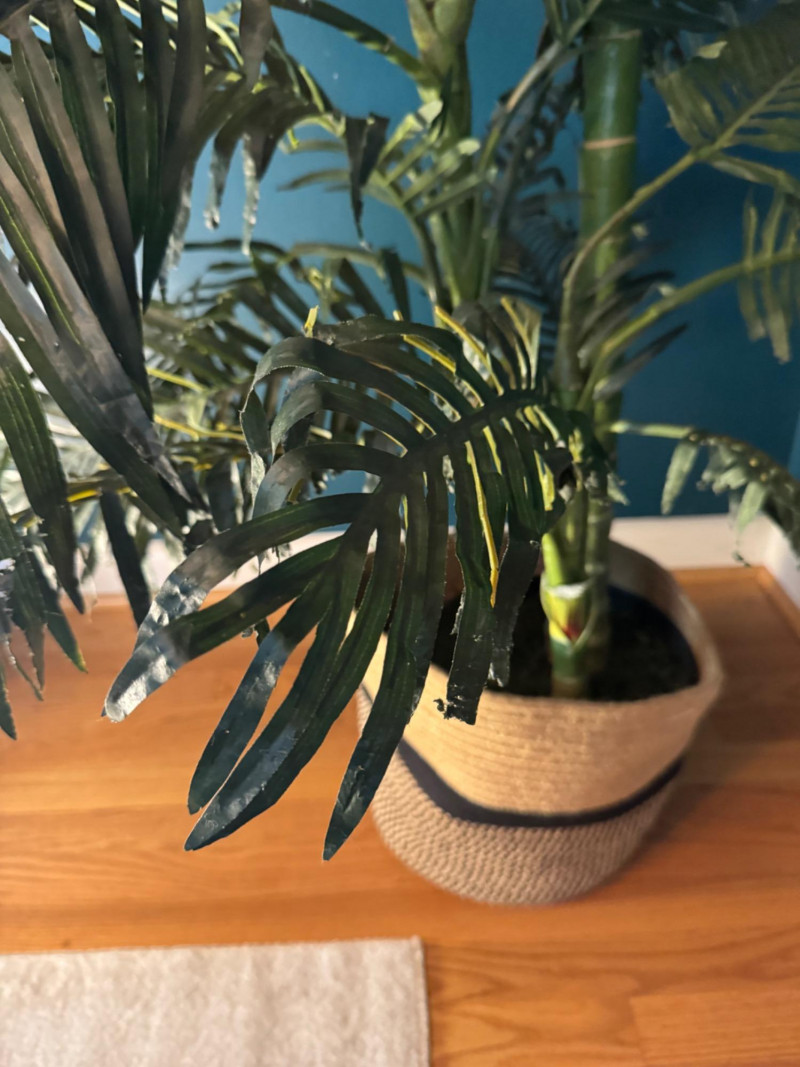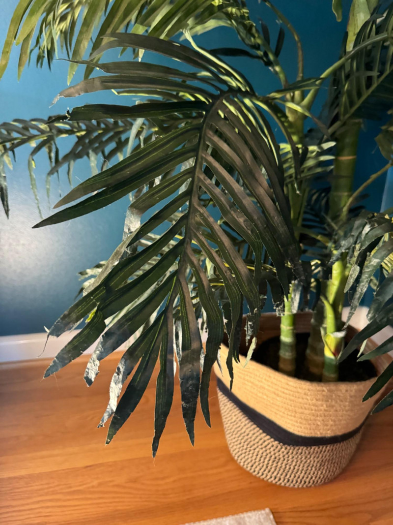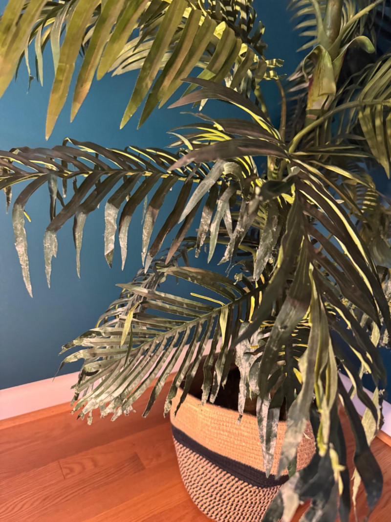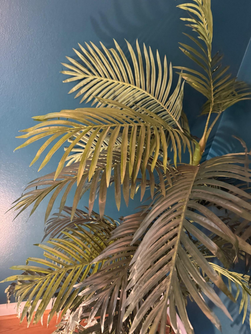 Tall Artificial Palm Tree in Woven Basket Planter – 74”.
