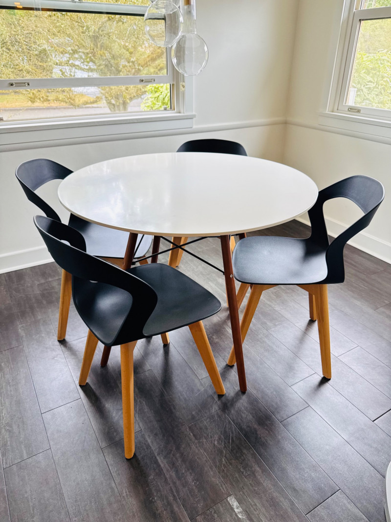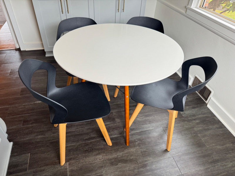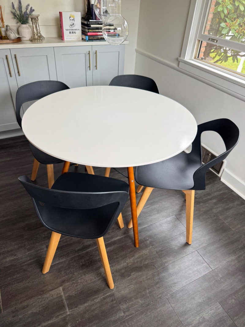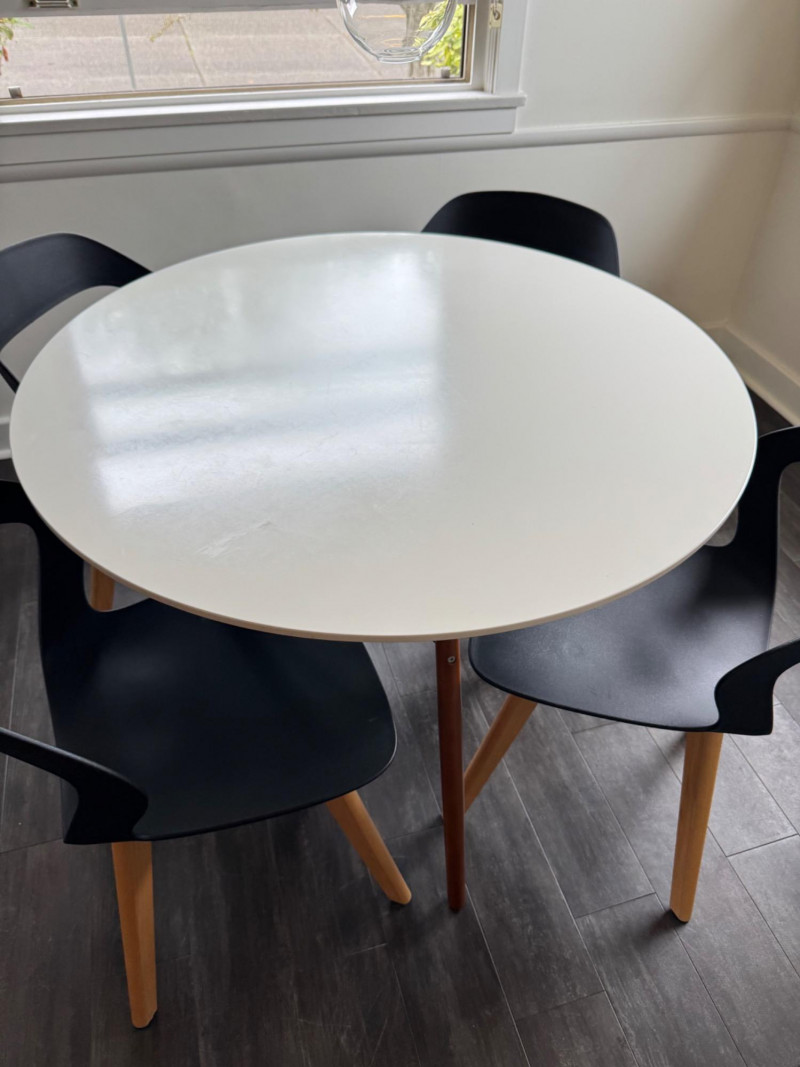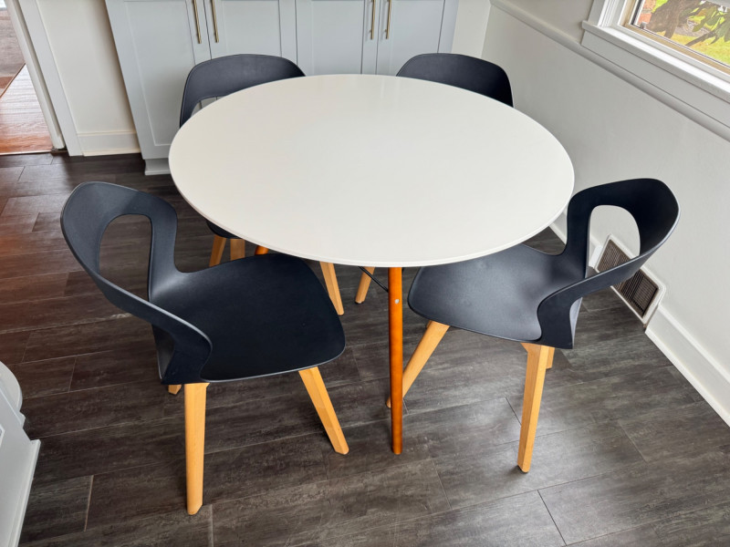 Modern Kitchen Dining Set – Round Table & 4 Chairs w/ Curved Back.