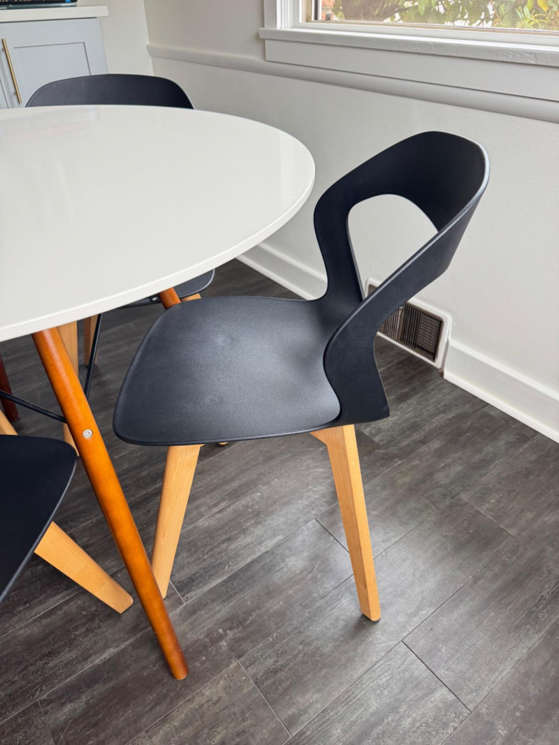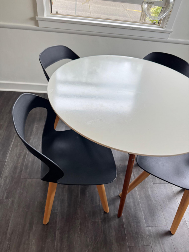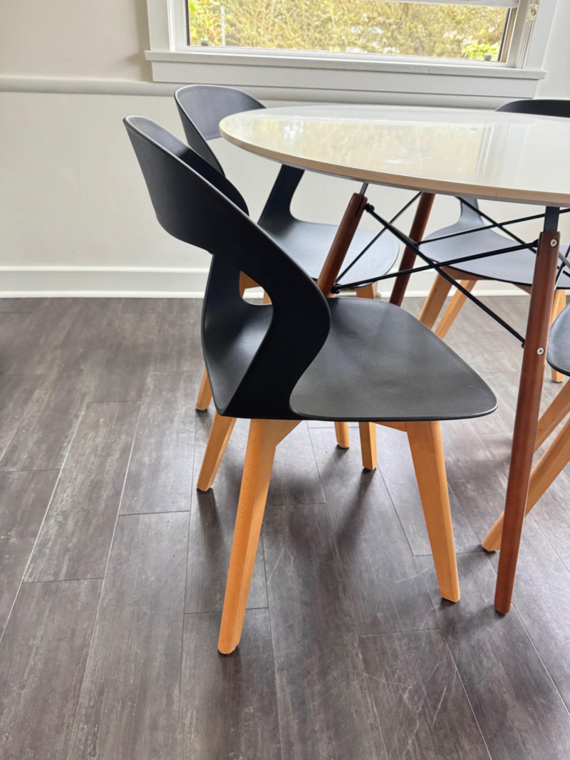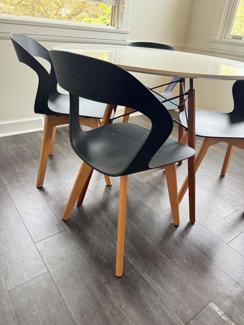 Modern Kitchen Dining Set – Round Table & 4 Chairs w/ Curved Back.