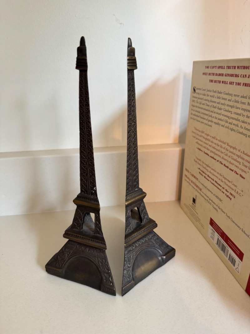 Lot # 34 - Eiffel Tower Metal Bookends + Mixed Subject Book Collection Lot
