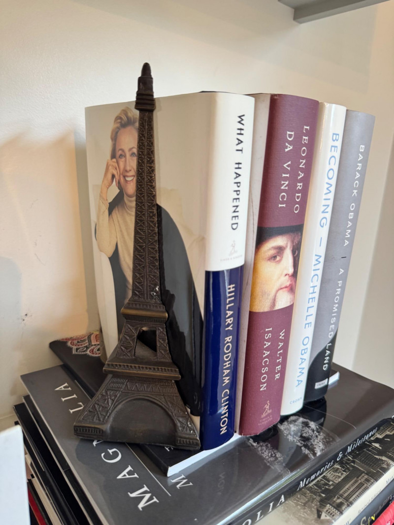 Eiffel Tower Metal Bookends + Mixed Subject Book Collection Lot.