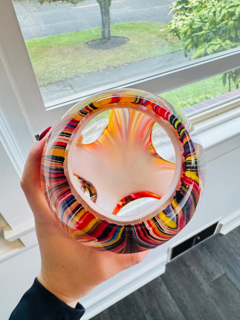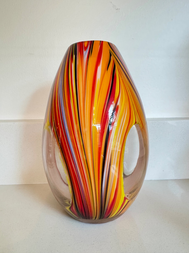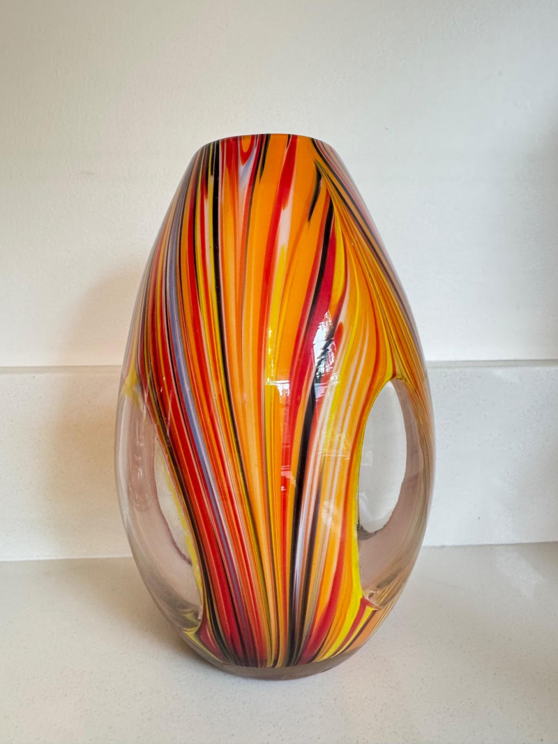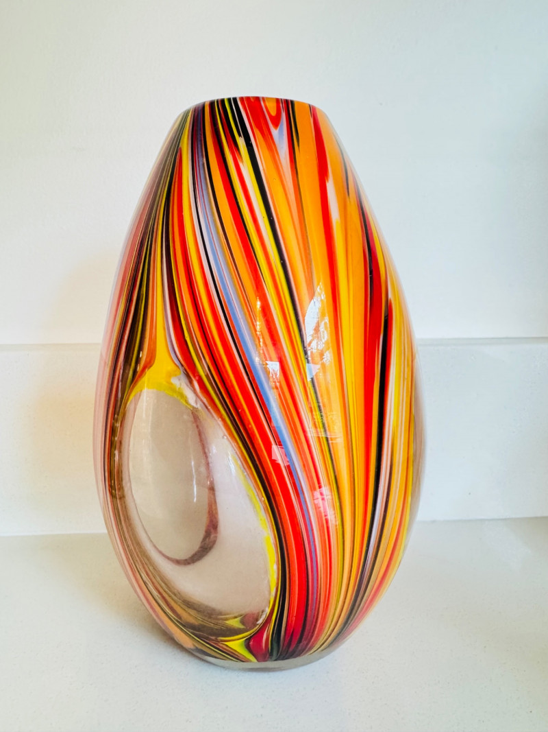 Hand-Blown Vibrant Optical Striped Glass Vase – Missoni Style.