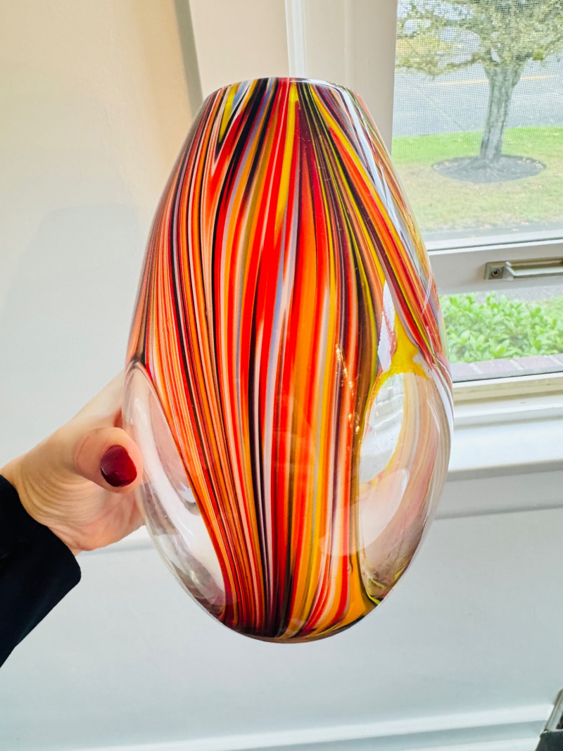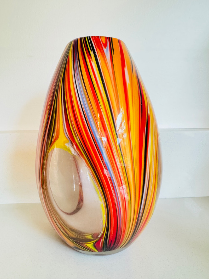 Lot # 36 - Hand-Blown Vibrant Optical Striped Glass Vase – Missoni Style