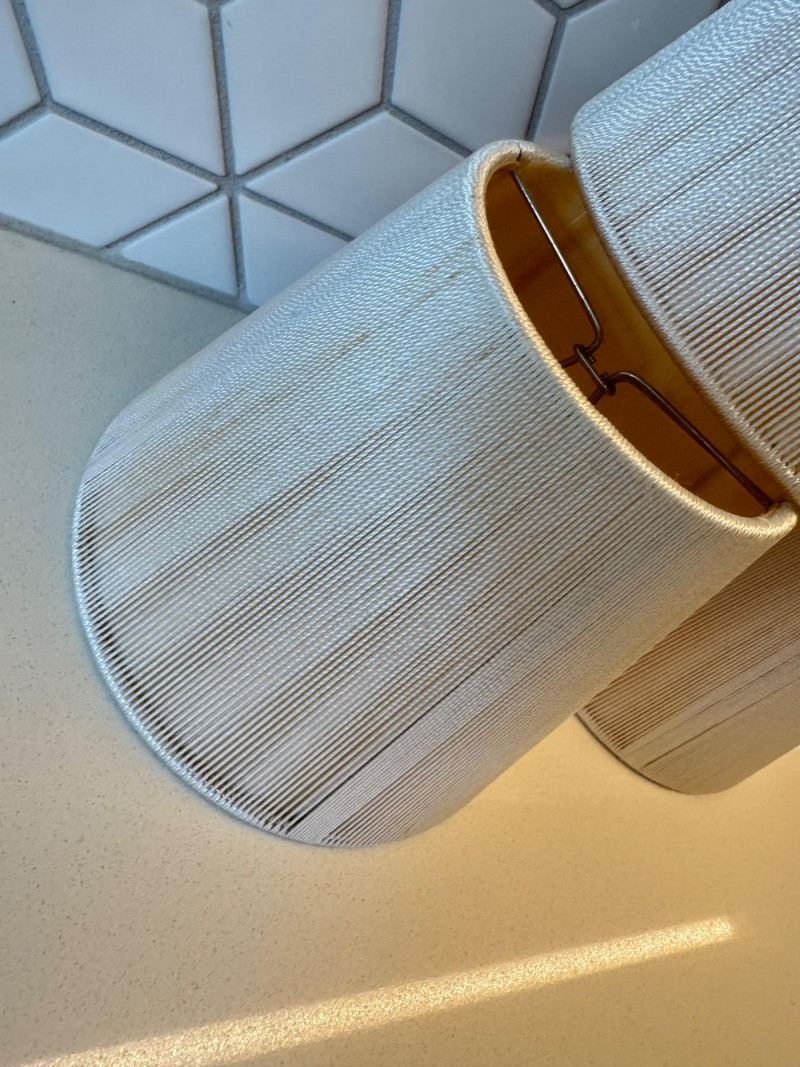 Lot # 41 - Set of 6 Silk String Champagne Mini Lamp / Sconce Shades