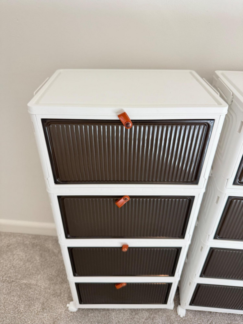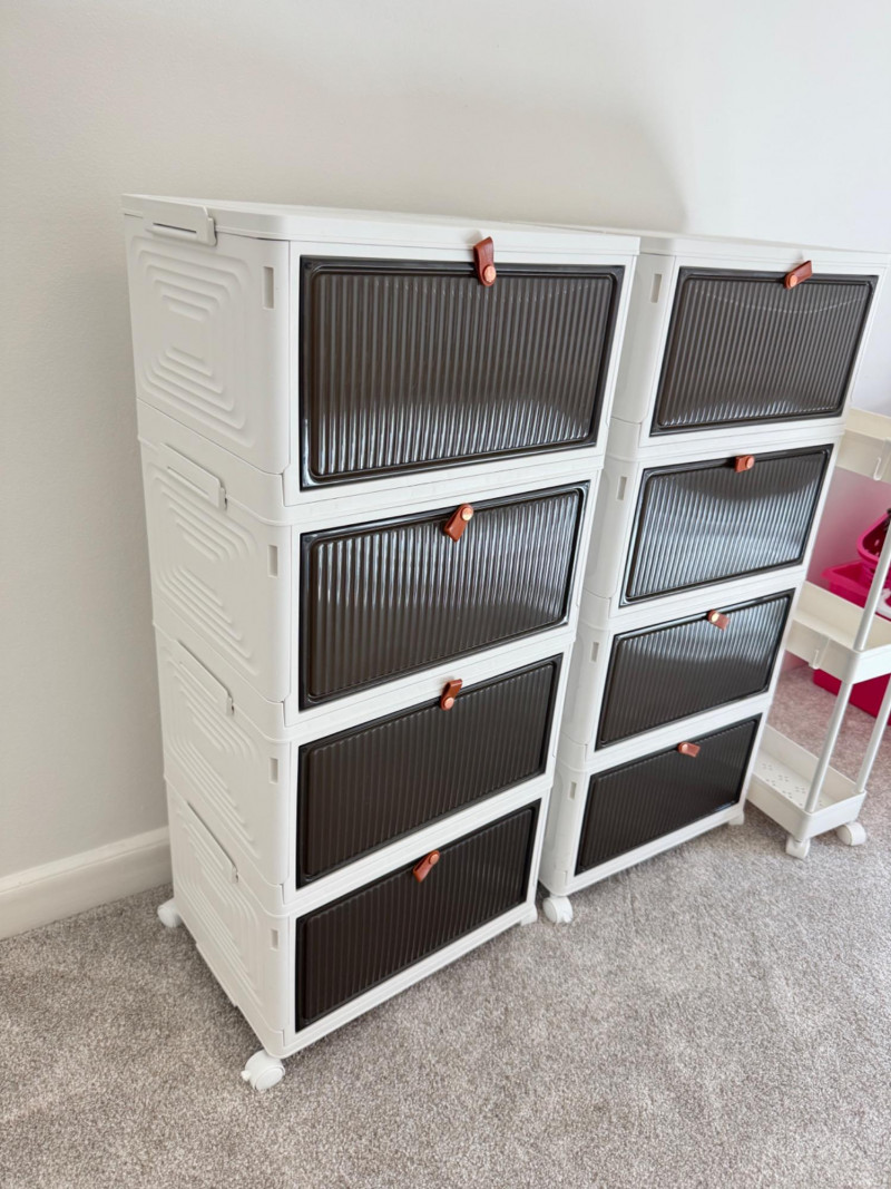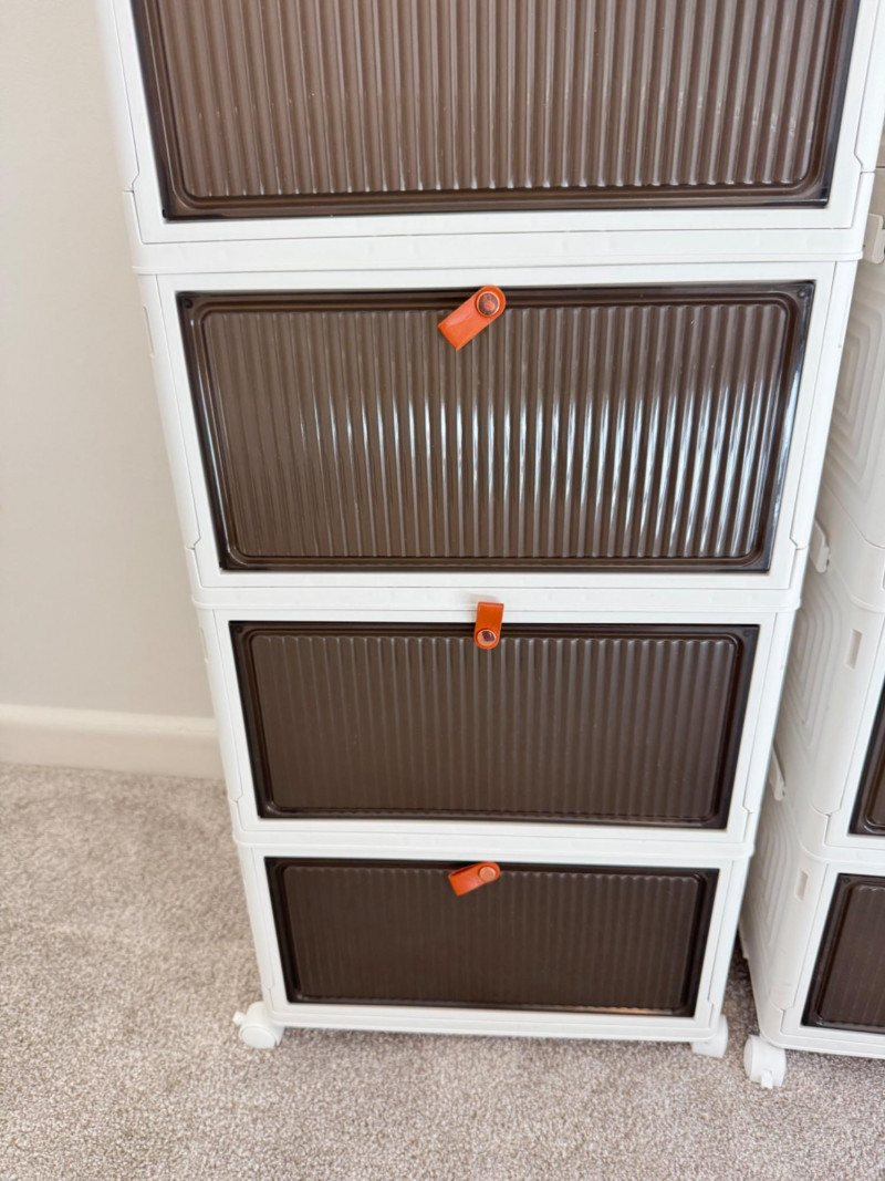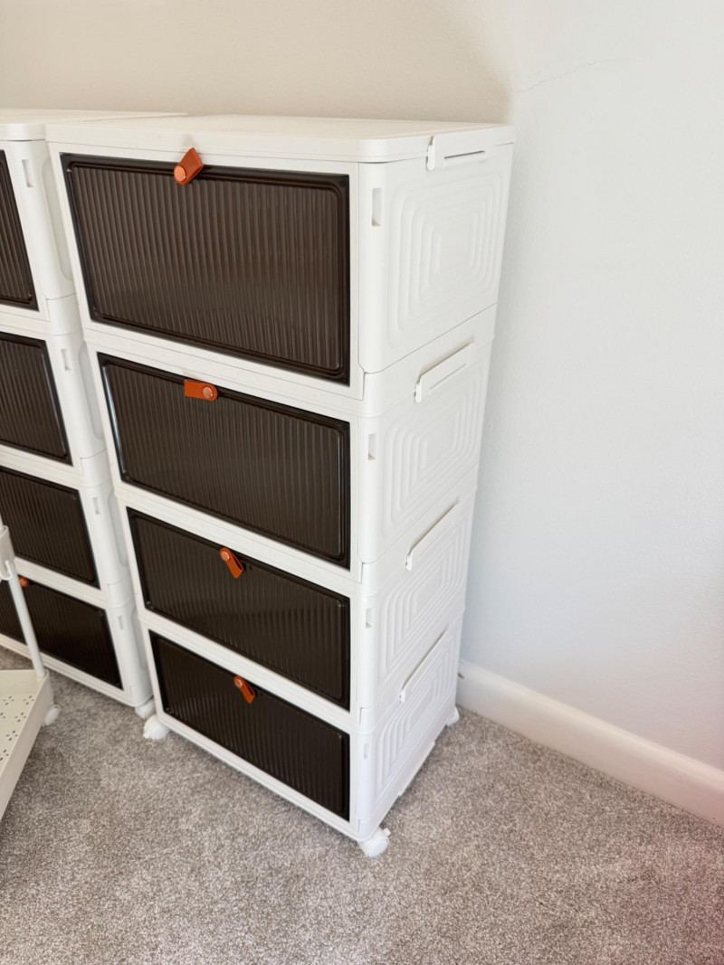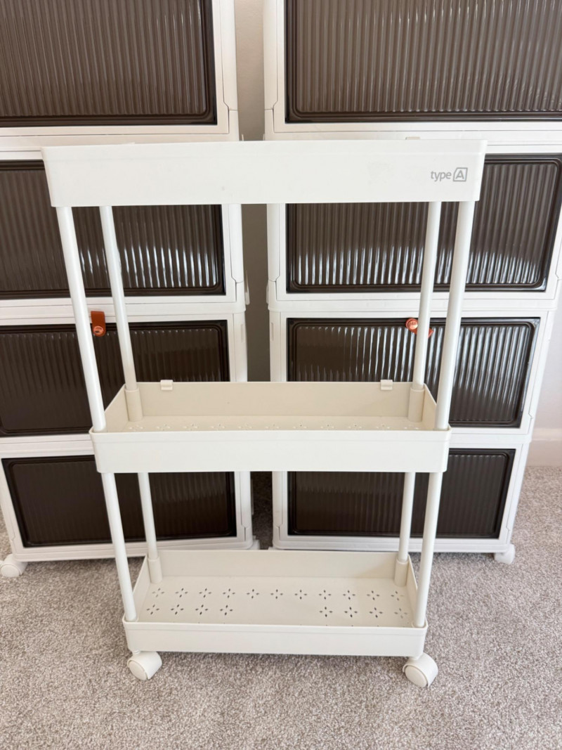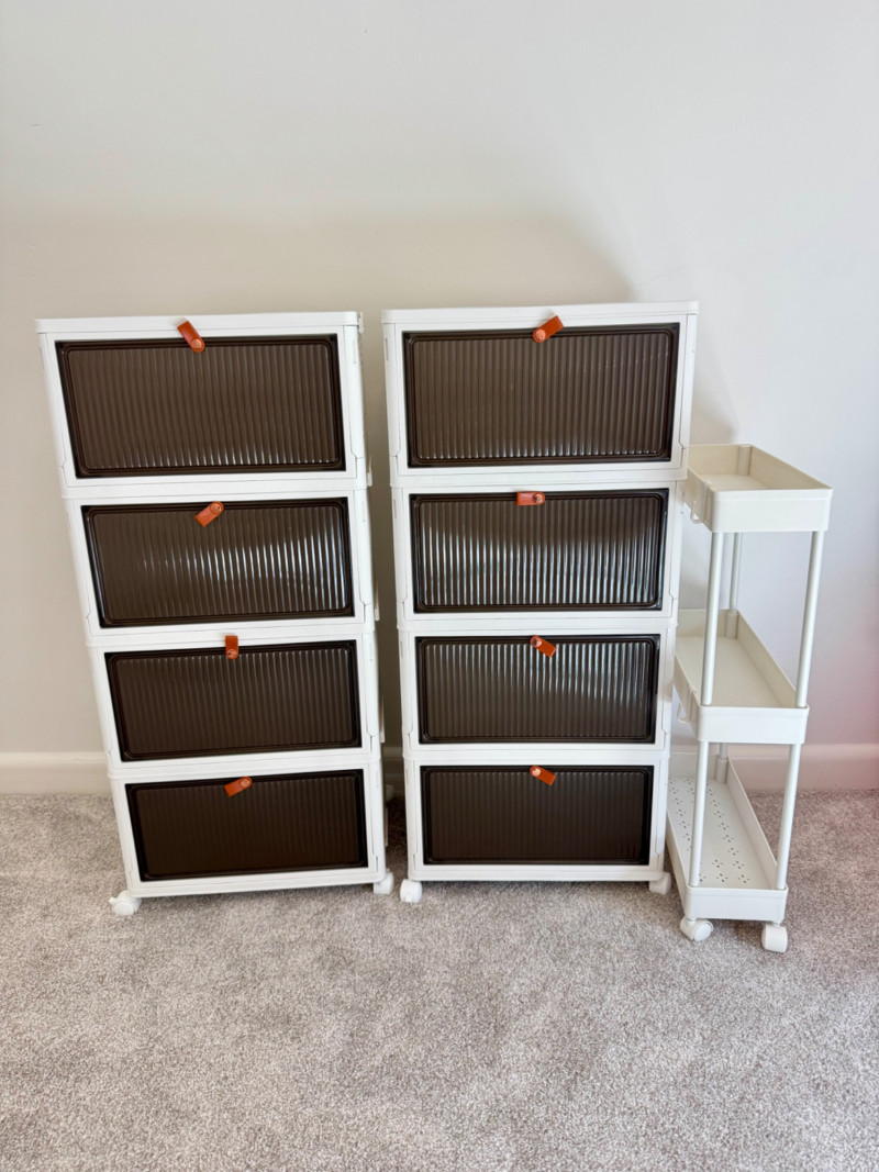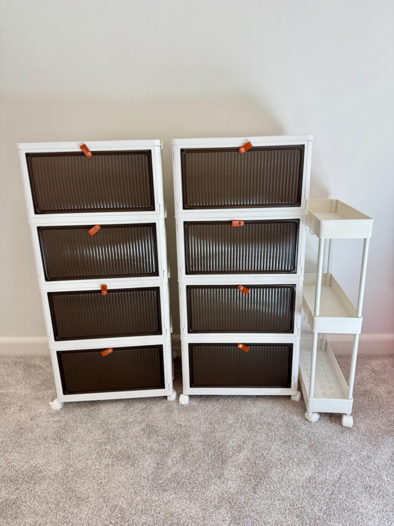 Set of 3 Rolling Storage Organizers – White & Brown Plastic Drawers.