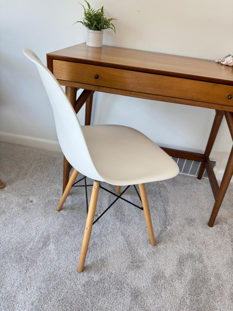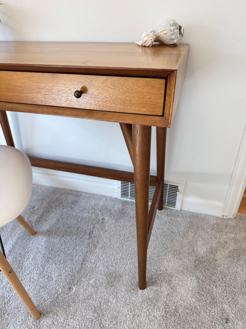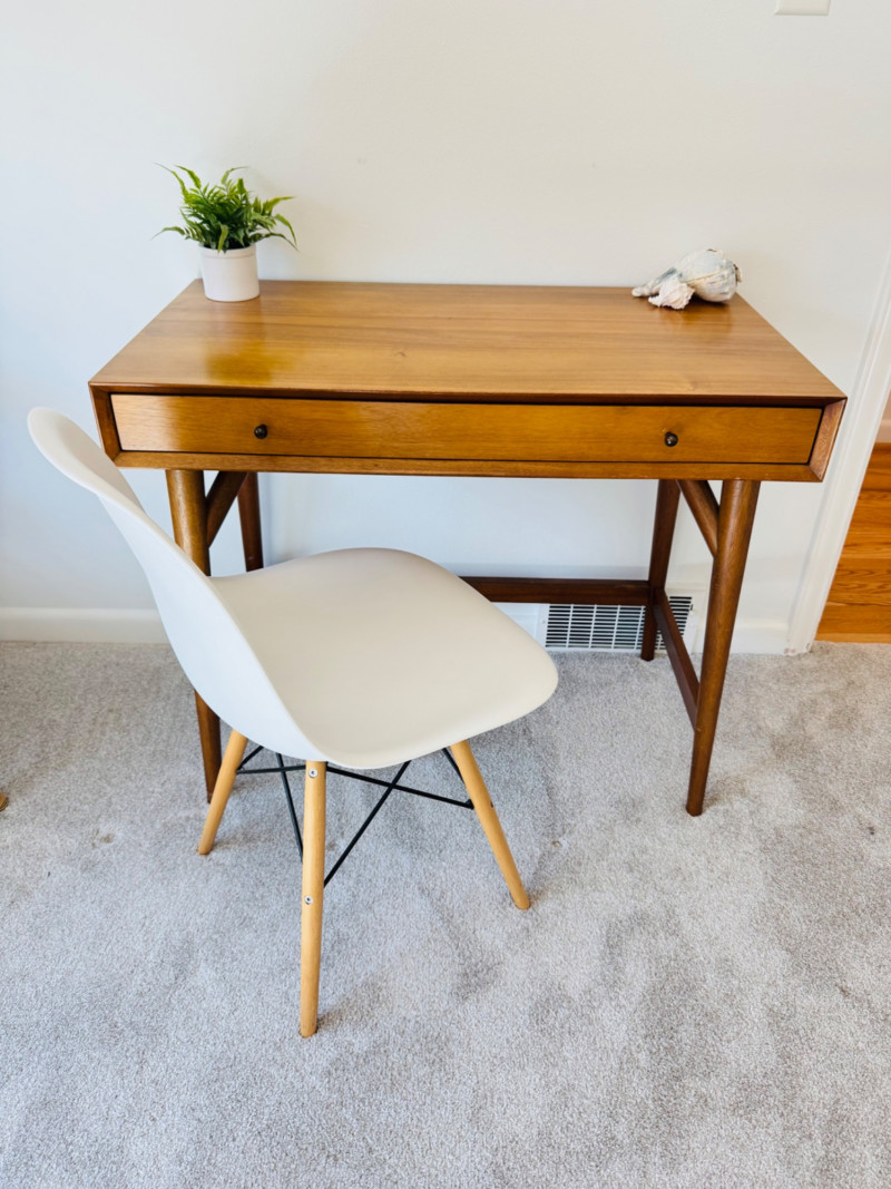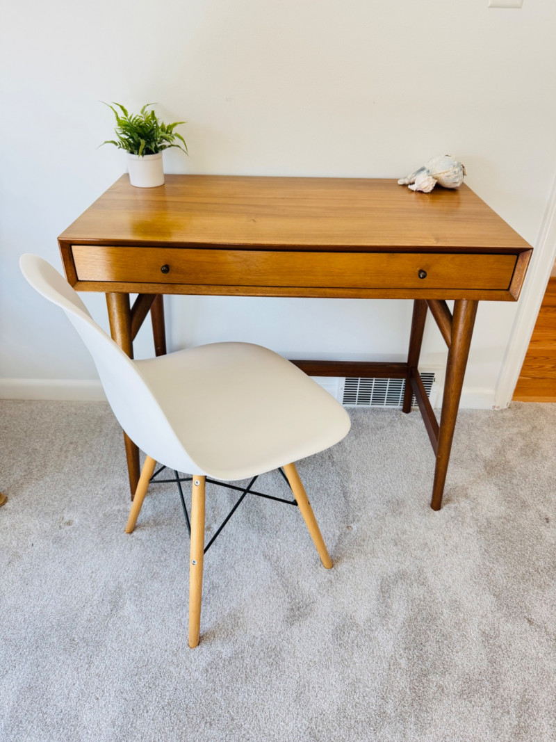 MCM Style Desk w/ Drawer, Chair & Desktop Decor.