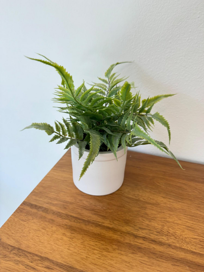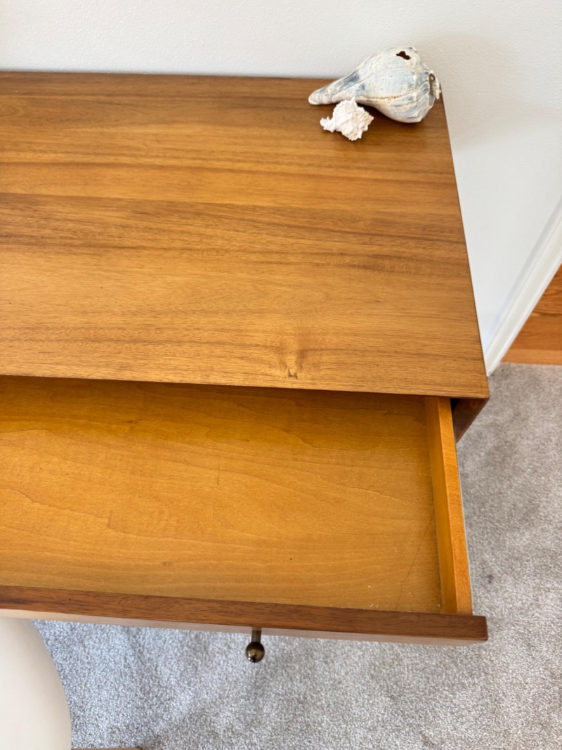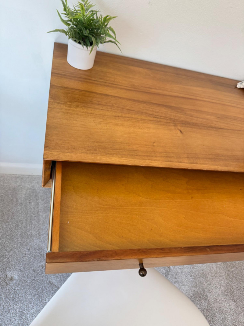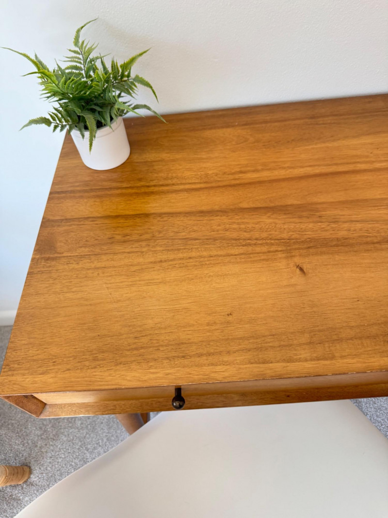 MCM Style Desk w/ Drawer, Chair & Desktop Decor.