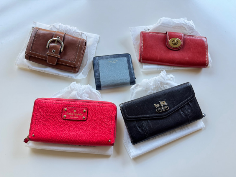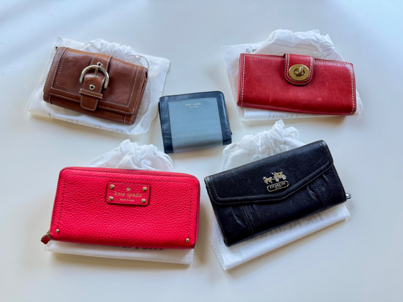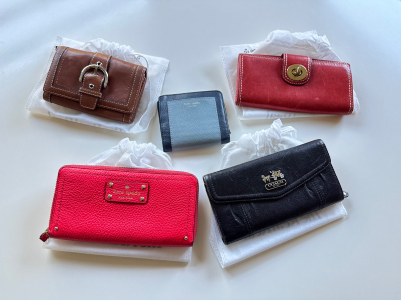 Coach & Kate Spade Wallet Lot – Vintage & Modern Styles, 5 Pieces.