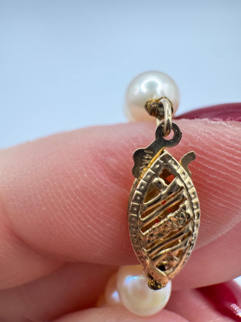 Lot # 60 - Petite Jewelry Ensemble – 14K Earrings, Pearl Bracelet, & Coach Hoops