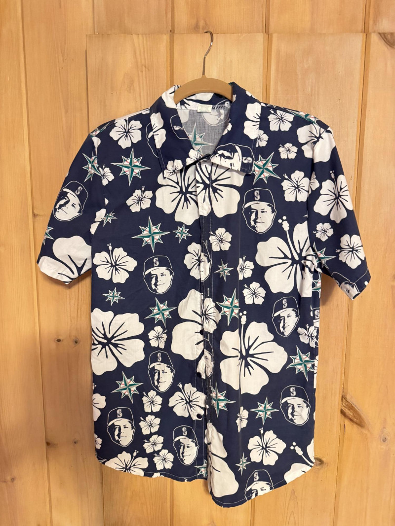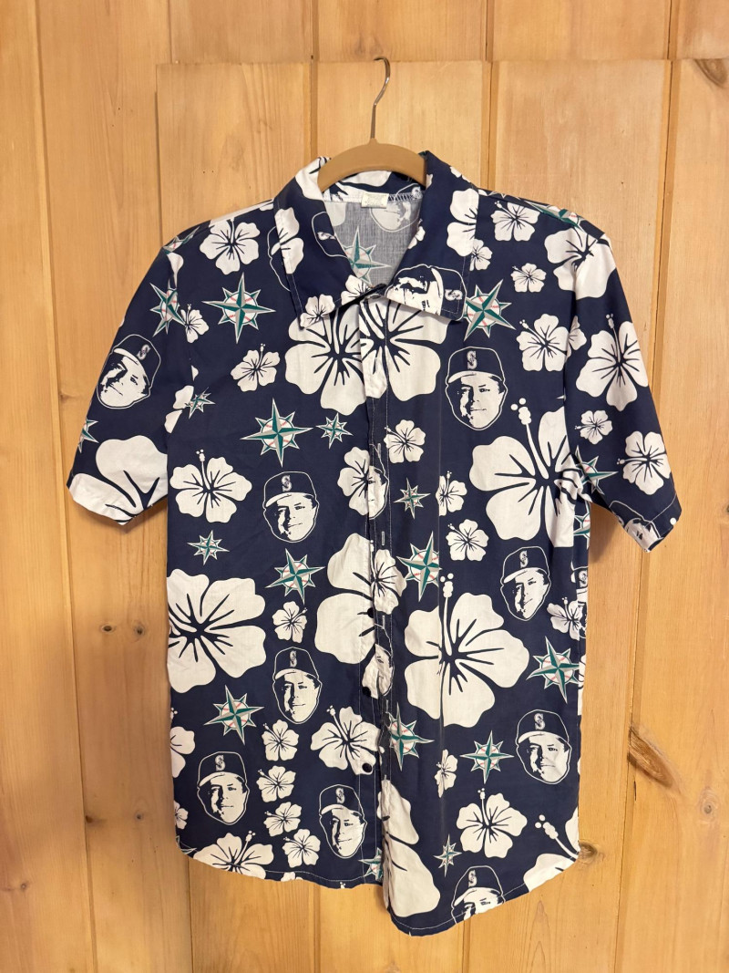 Vintage Seattle Mariners Lou Piniella Hawaiian Button Down Shirt. Size Medium.