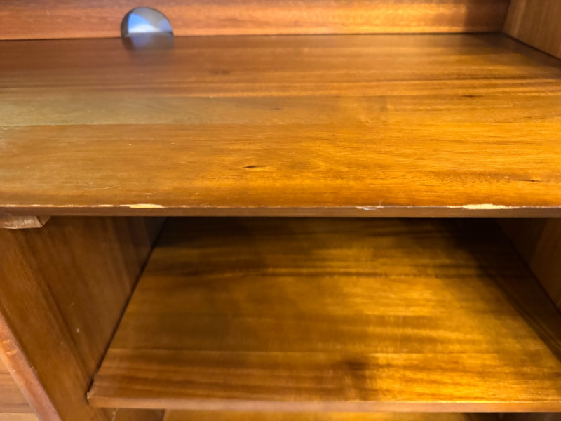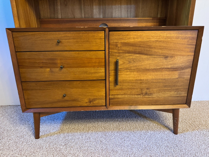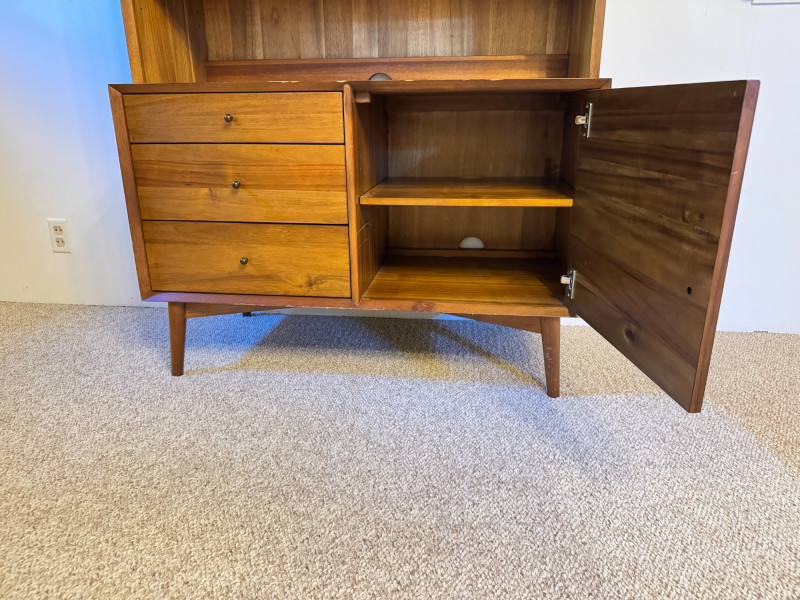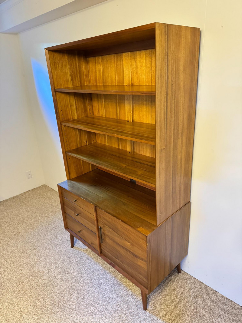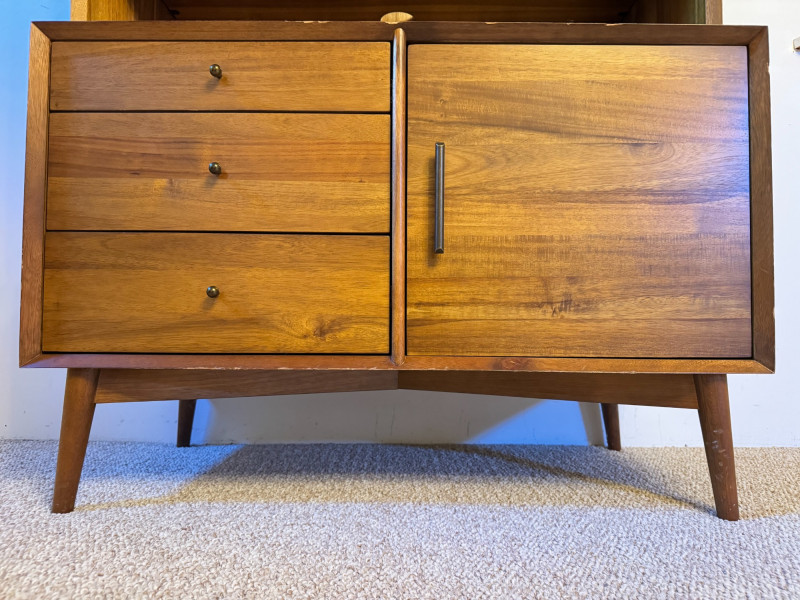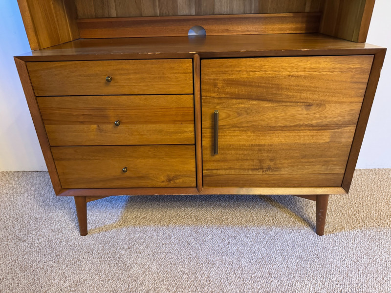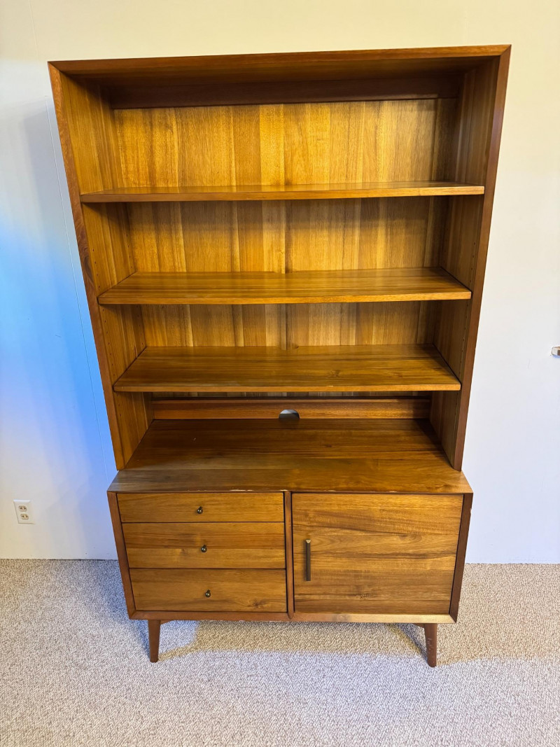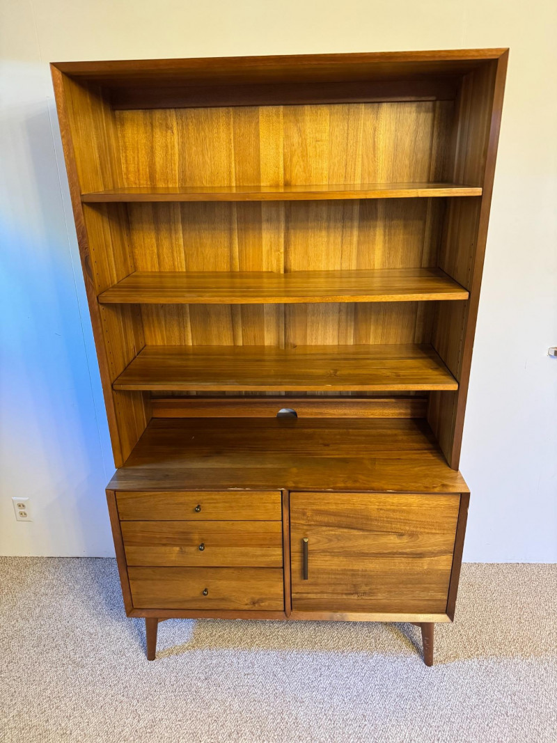 Mid-Century Modern Style Wooden Hutch w/ Shelves & Storage . 40 x 19 x 69 Bidding on this lot is an agreement that: (1.) You will have at least 2 capable, able bodied persons to lift and load at a minimum. (2.) You will bring a hand truck and/or any other tools needed to remove this item. If these steps are not followed your item will be forfeit and no refund given.