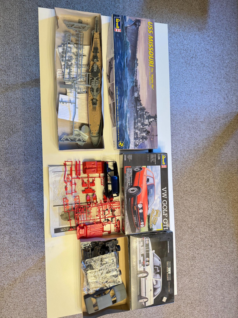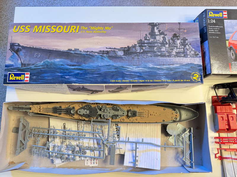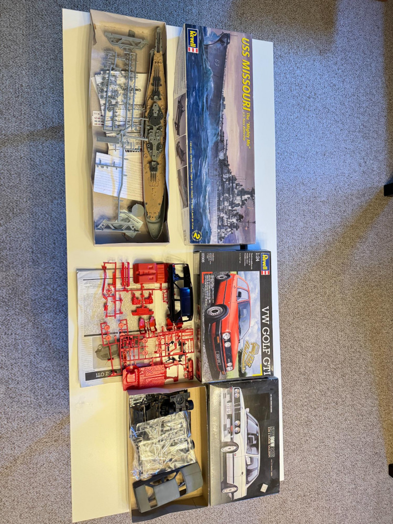 Lot of 4 Revell & BMW Model Kits – Cars & Battleship.