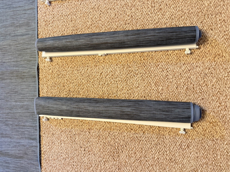 Set of 4 Roller Window Blinds – Charcoal Woven Fabric w/ Hardware. 24 x 100