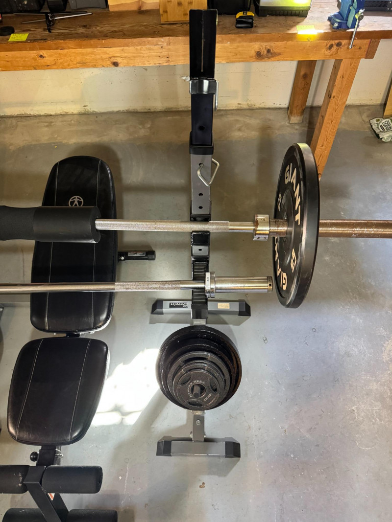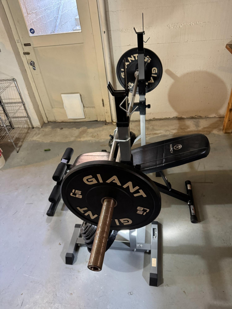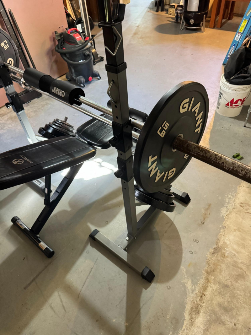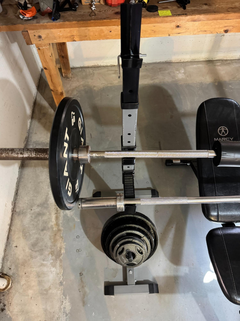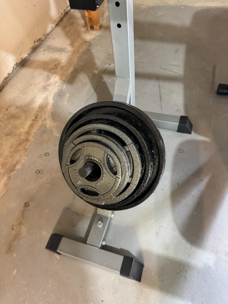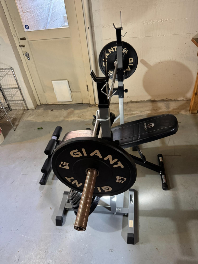 Marcy Weight Bench w/ Barbell, GIANT Plates & Accessories. 2 x barbells weights from 2.5lb to 35lb
