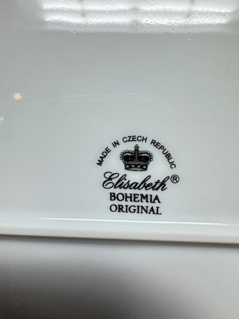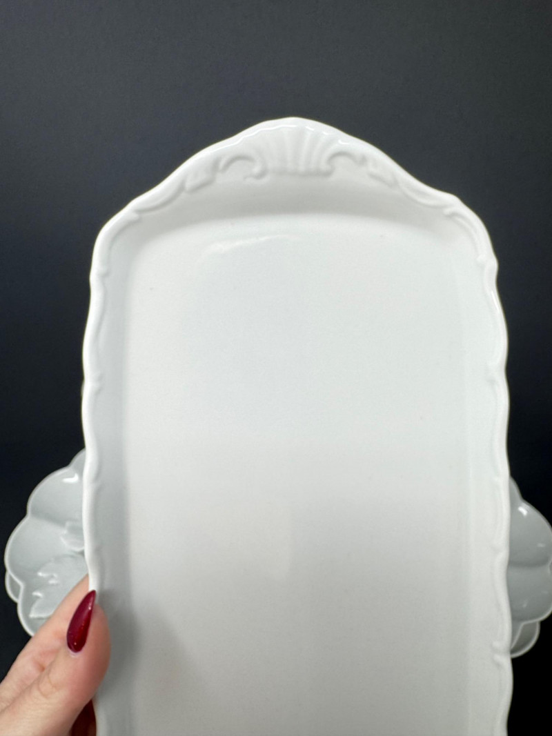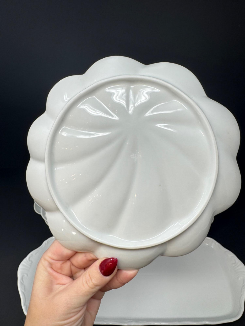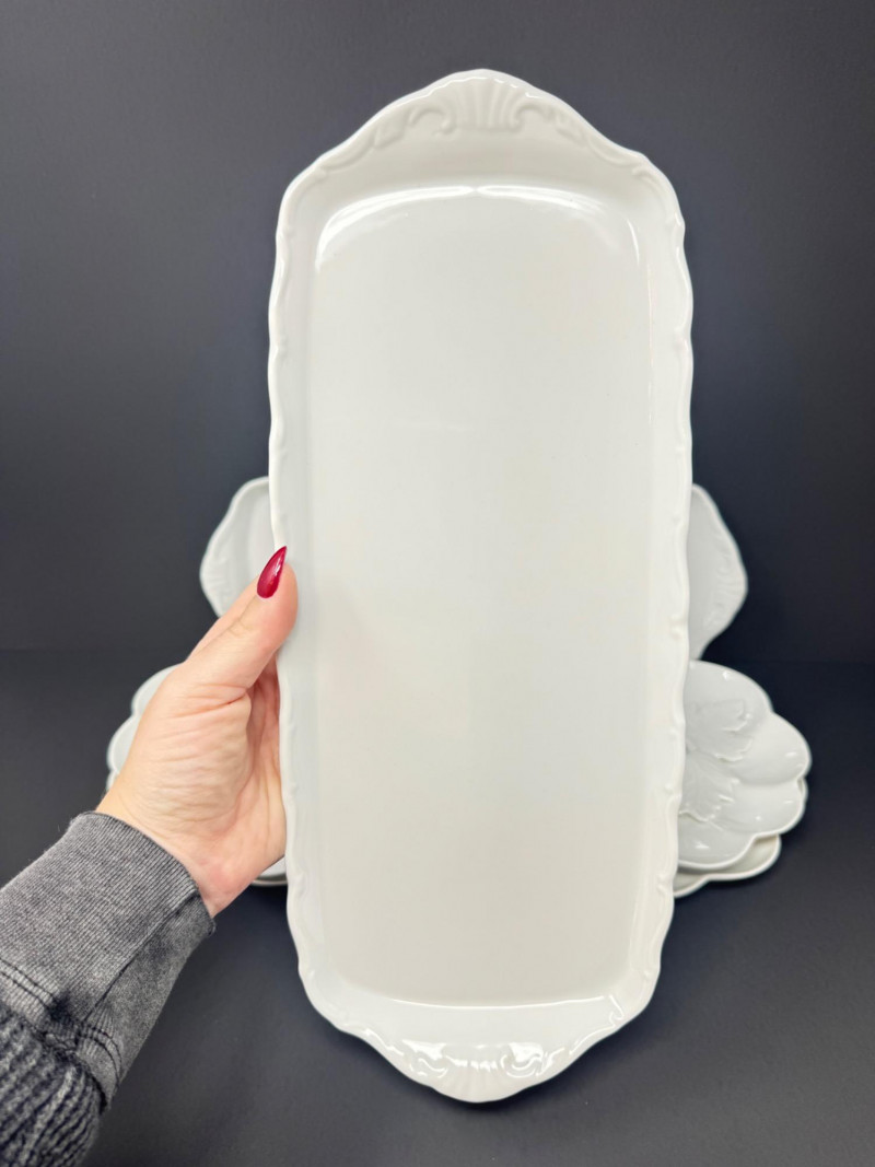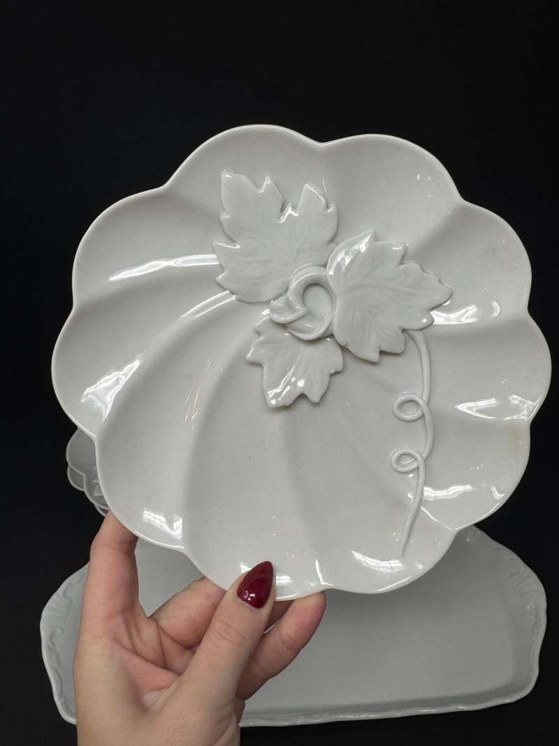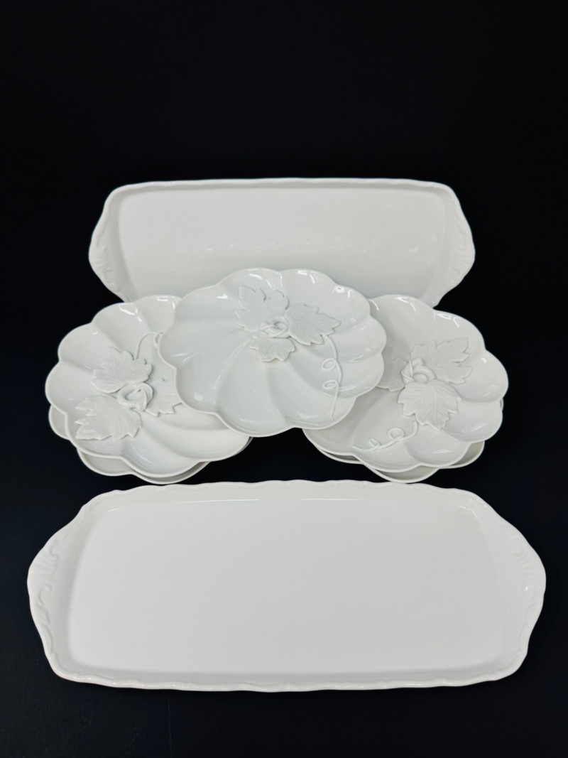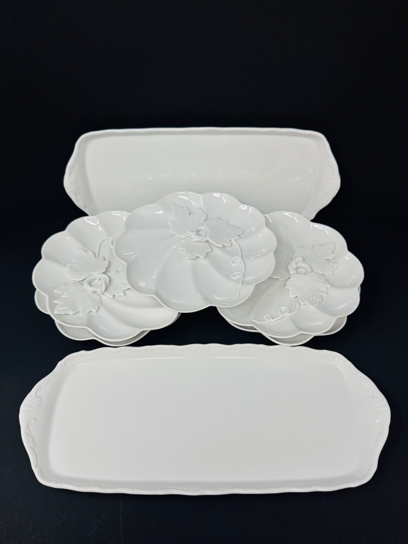 Elisabeth Bohemia Porcelain Platters & 5 White Leaf Design Plates Set.