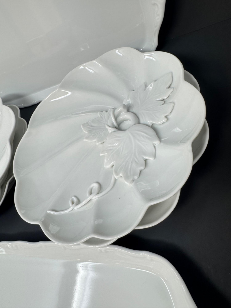 Lot # 1 - Elisabeth Bohemia Porcelain Platters & 5 White Leaf Design Plates Set