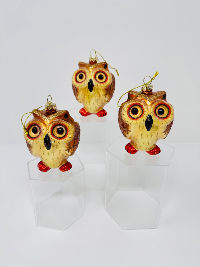 Hoo’s Ready for the Holidays – 3 Owl Ornaments, Copper Tone. 3.5” Tall