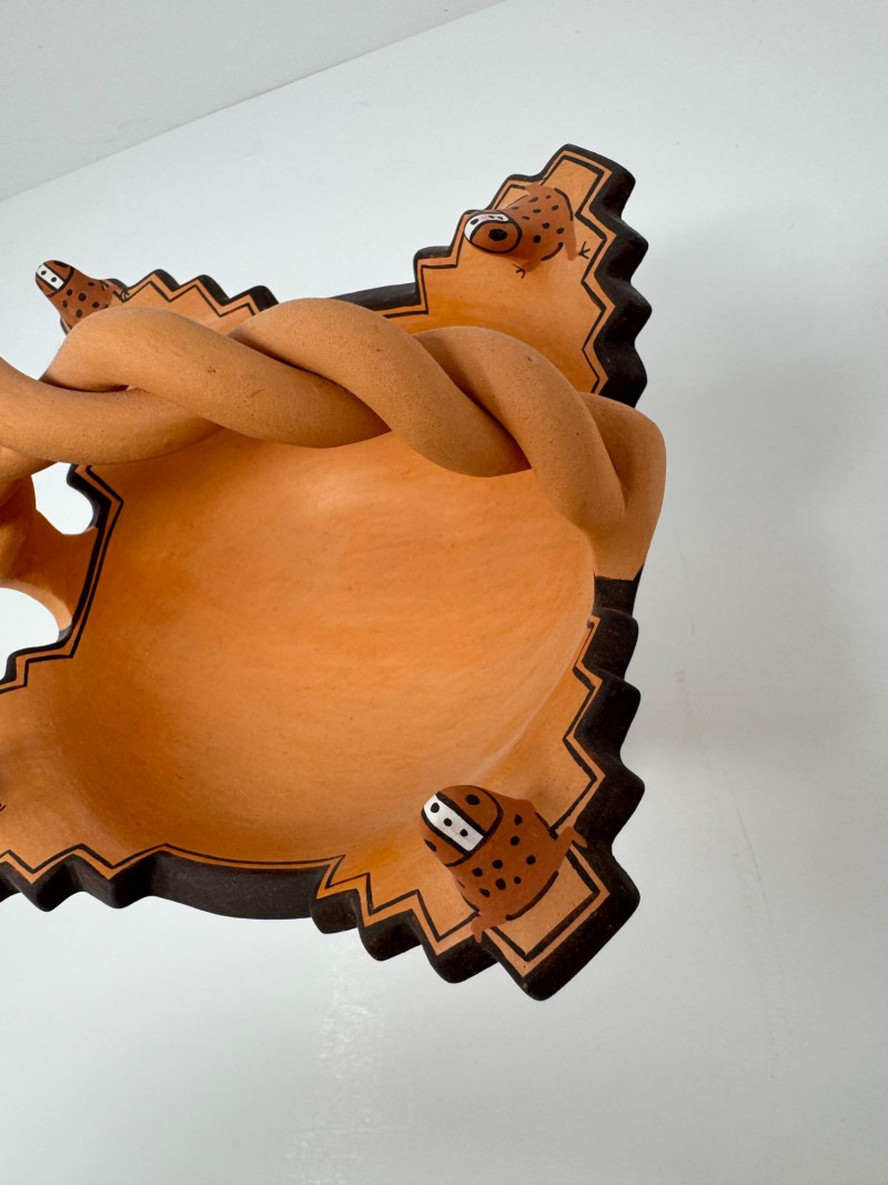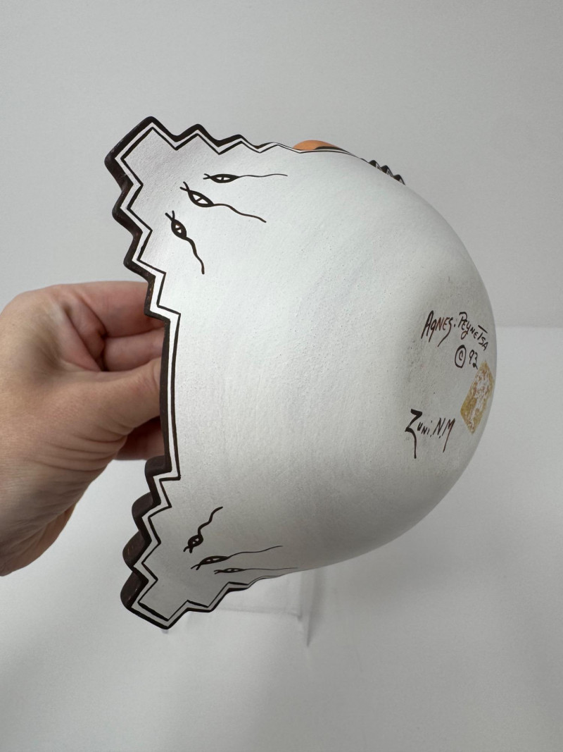 Lot # 20 - Agnes Peynetsa Zuni Corn Meal Bowl w/ Frogs, Signed '93 Est Value $400