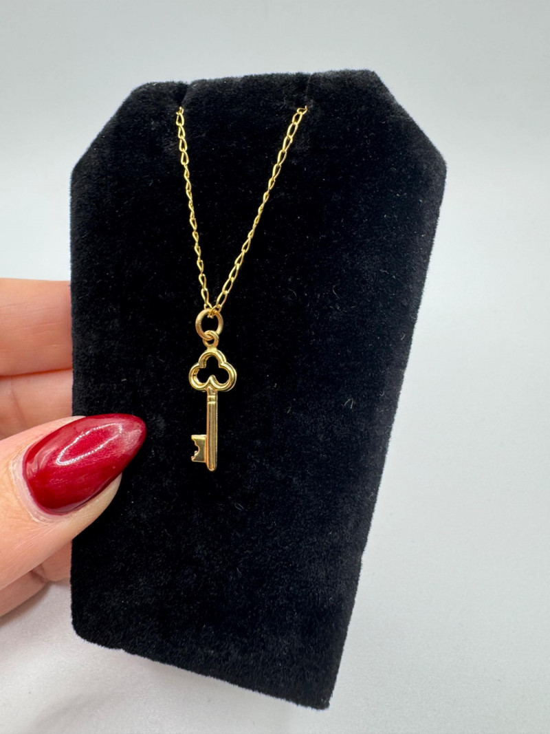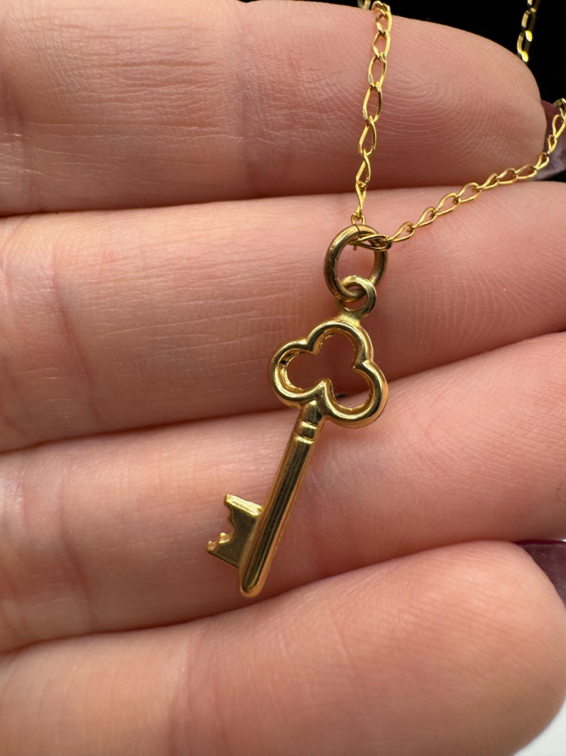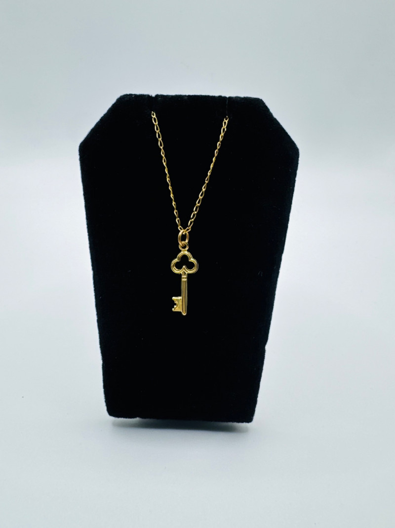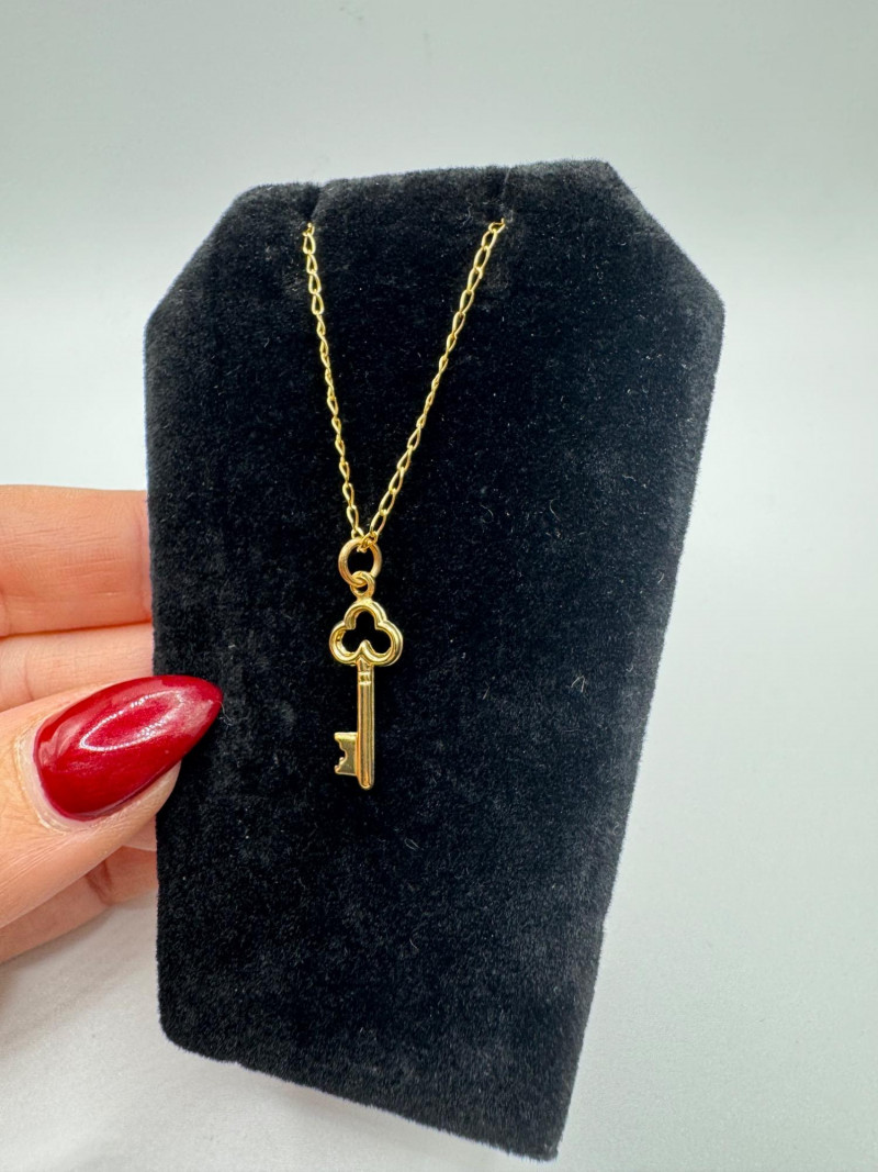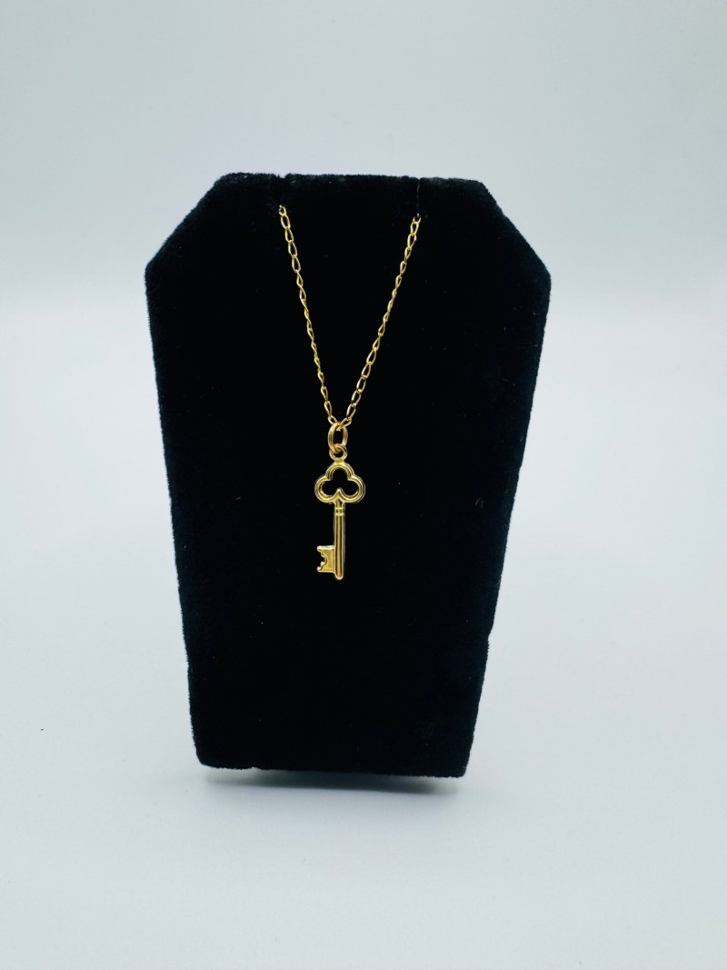 14K Gold Chain Necklace w/ Key Charm – 18” Disclaimer: The jewelry in this auction lot has not been tested. By placing a bid, you agree to purchase the item as is, with no guarantees regarding metal quality, content, or purity. Refunds will not be issued on these factors.