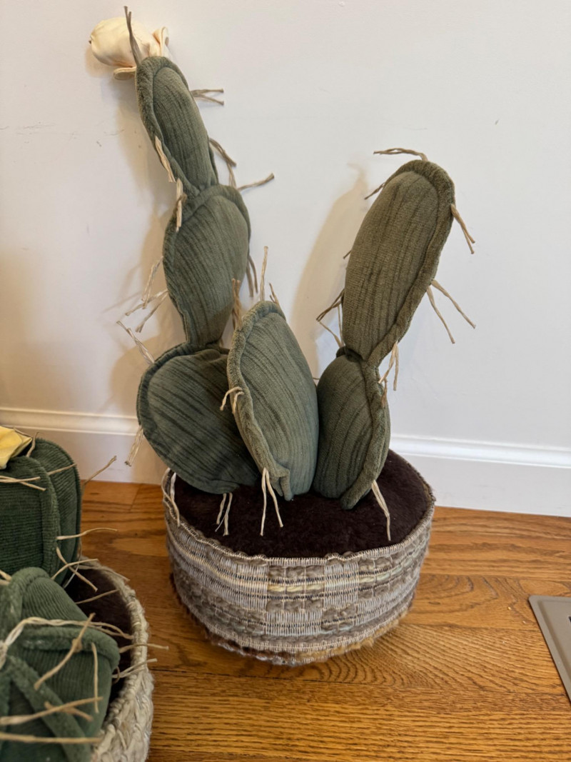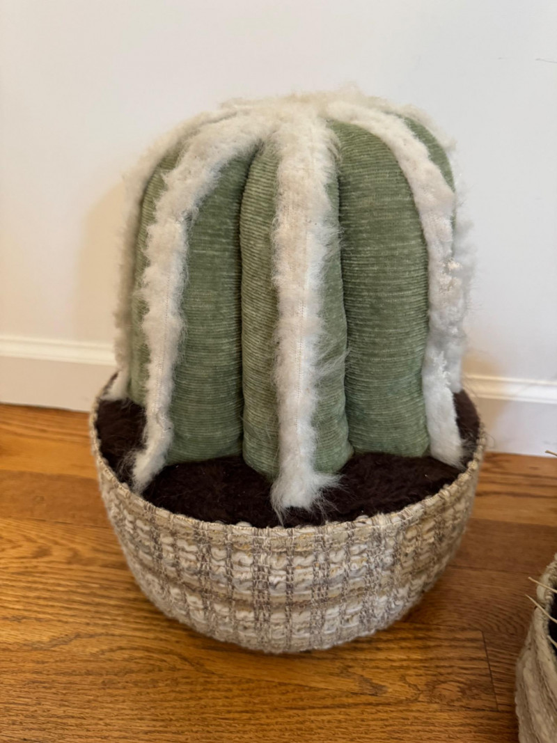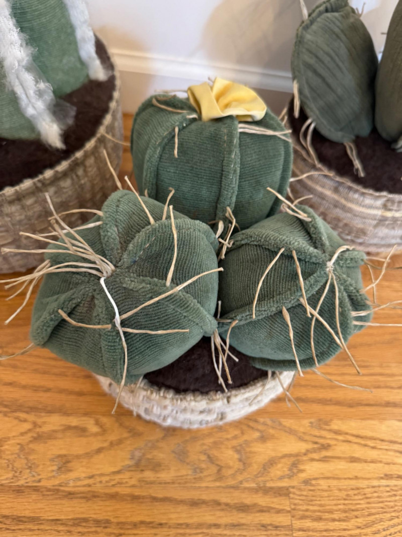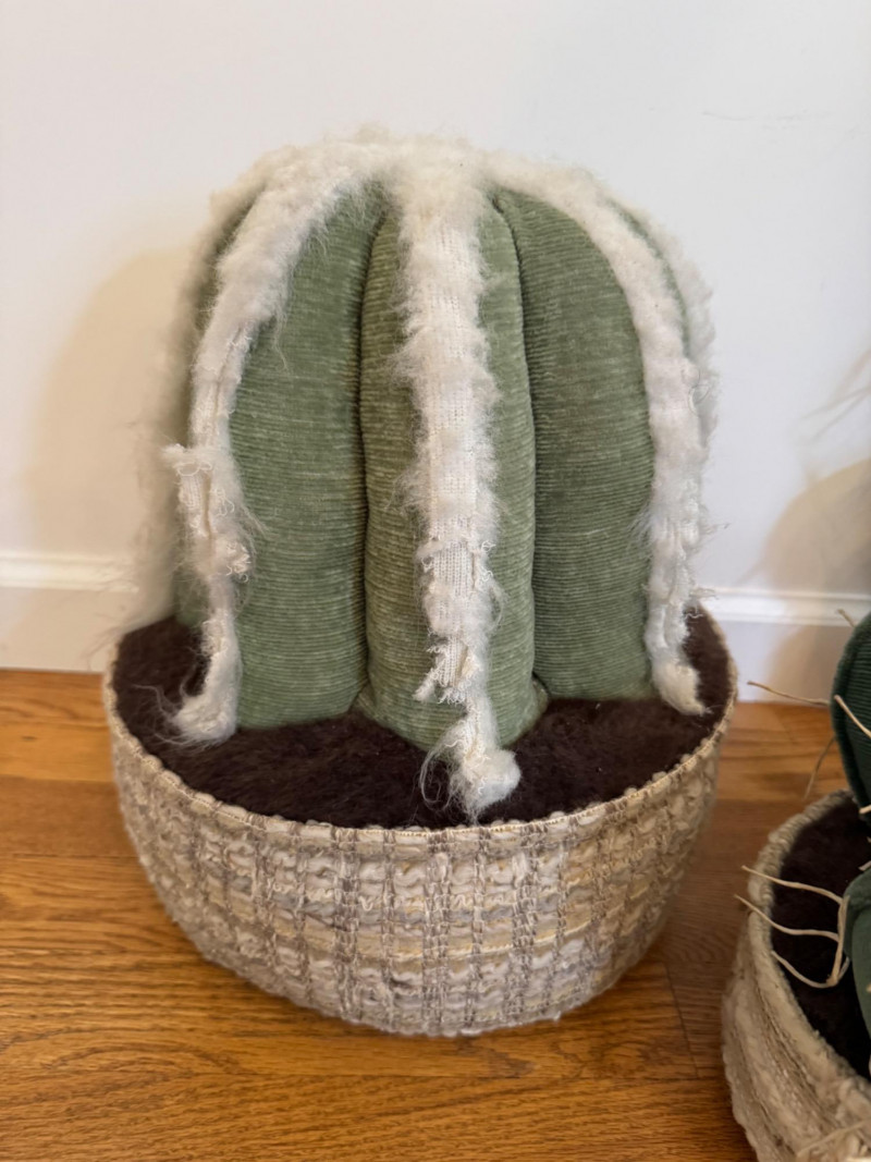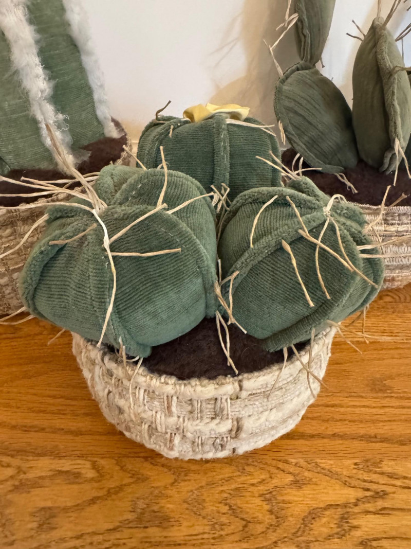 Lot # 35 - Set of 3 Stuffed Fabric Cactus Sculptures w/ Basket-Style Bases