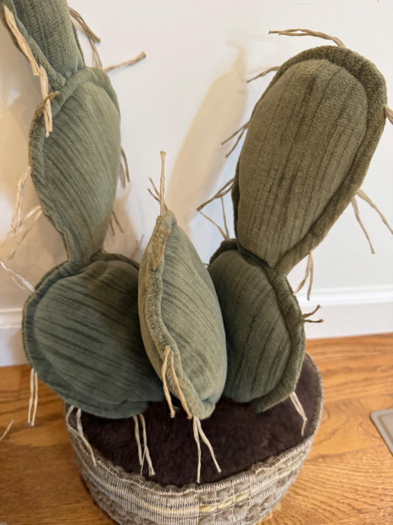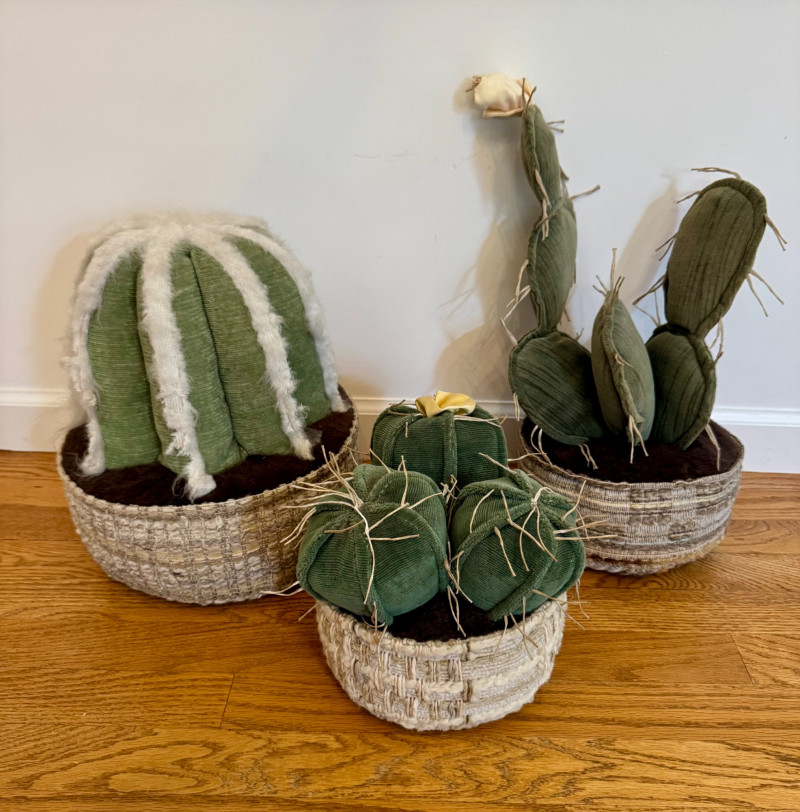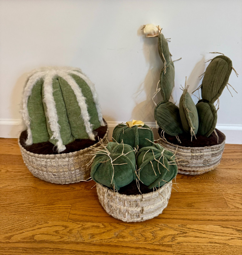 Set of 3 Stuffed Fabric Cactus Sculptures w/ Basket-Style Bases.