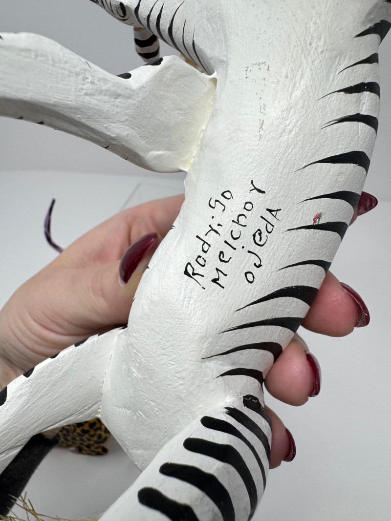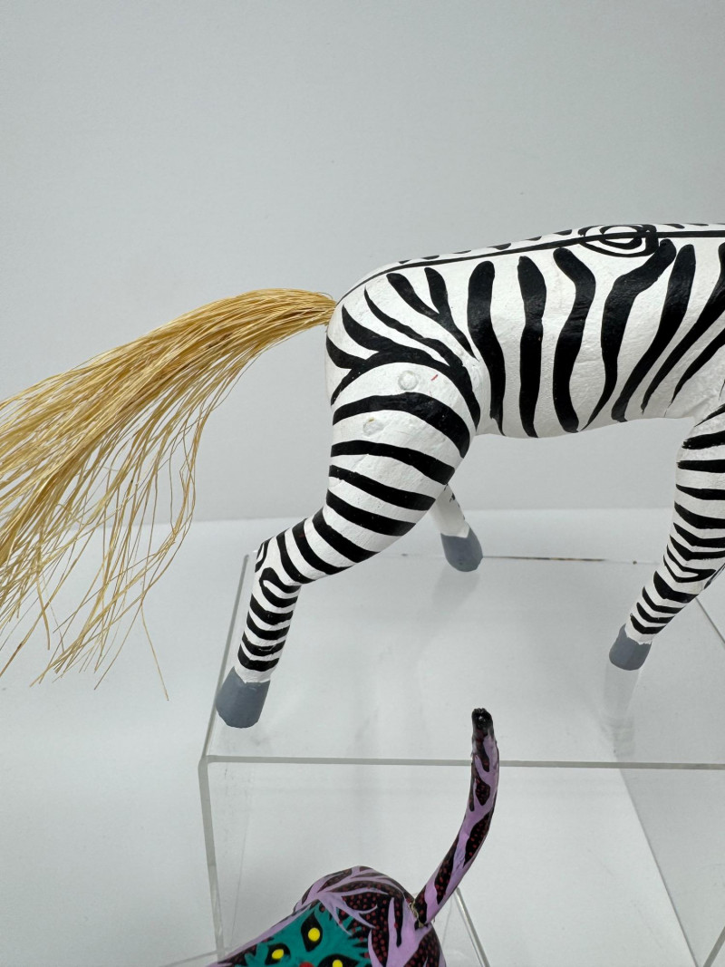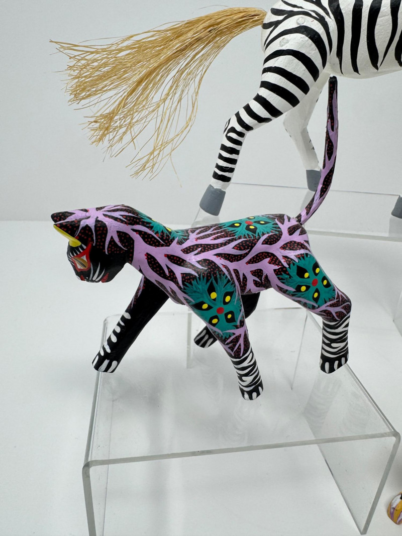 Lot # 41 - Zebra, Jaguar & Cat Oaxacan Alebrije Carvings – Signed by Artists
