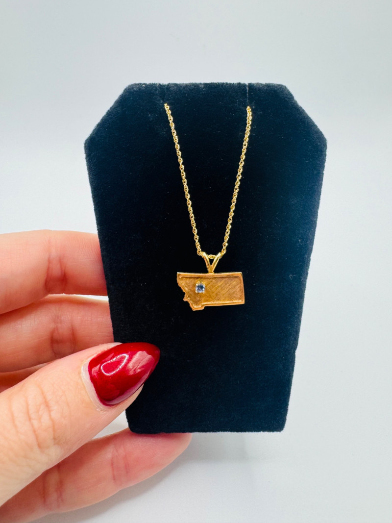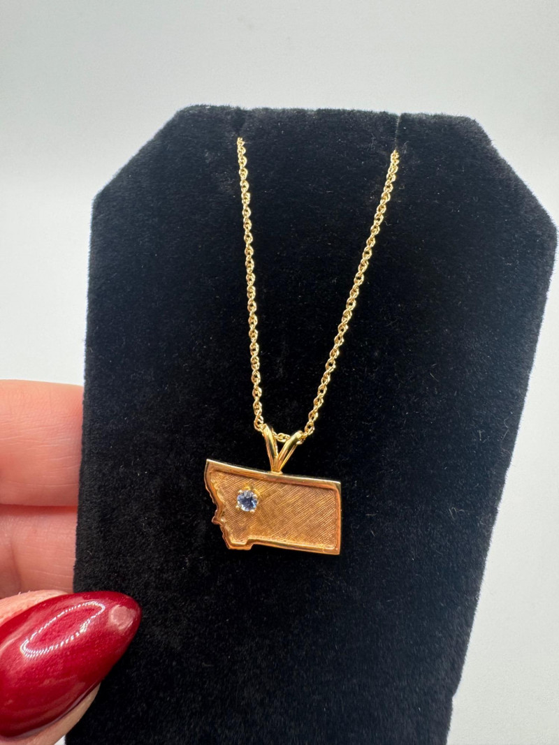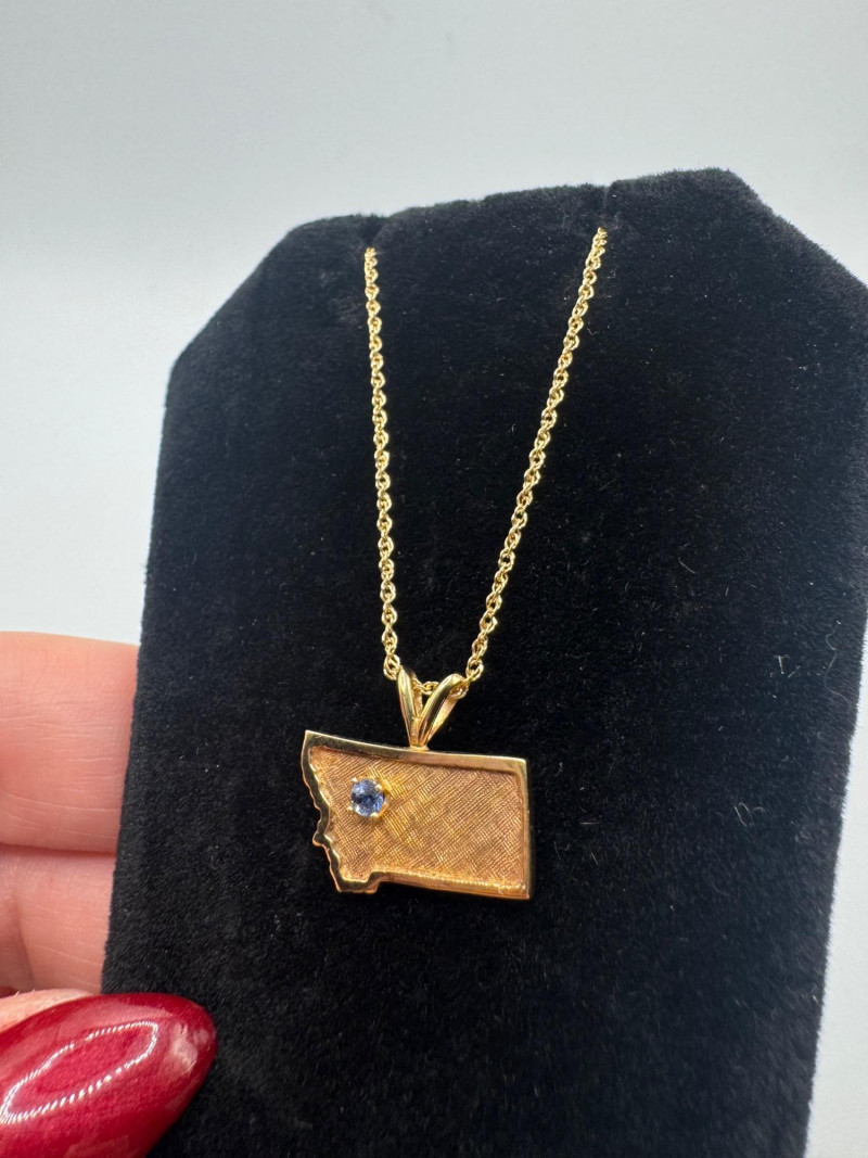 10K Gold Montana Pendant w/ Blue Stone on 14K Chain – 2.79g.