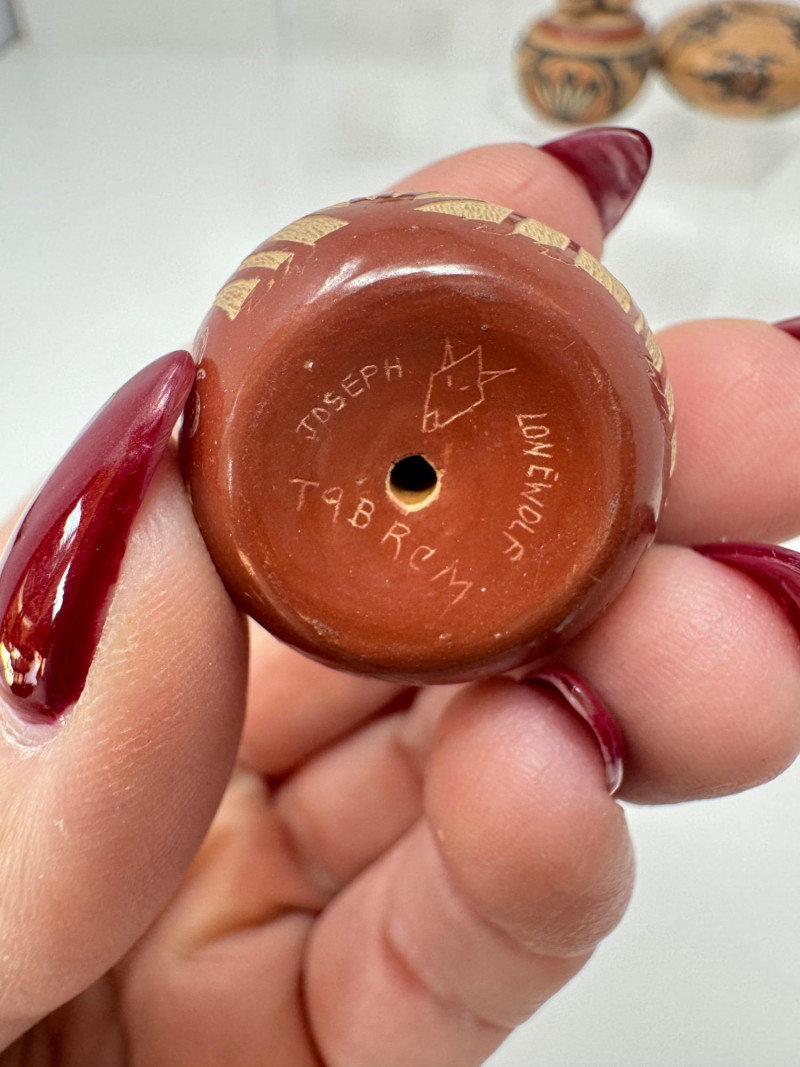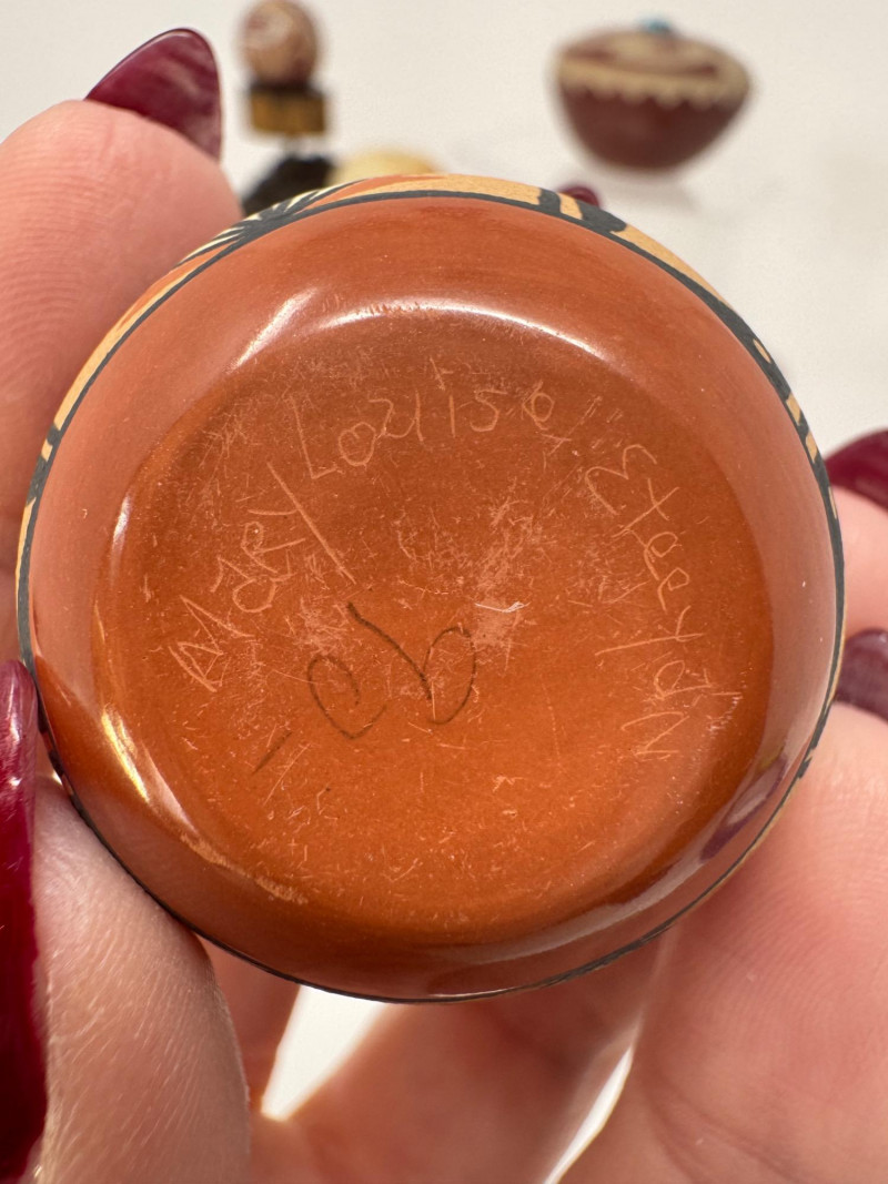 5 SW Miniature Signed Seed Pots – Veloz, Youvella, Lonewolf, Nampeyo.