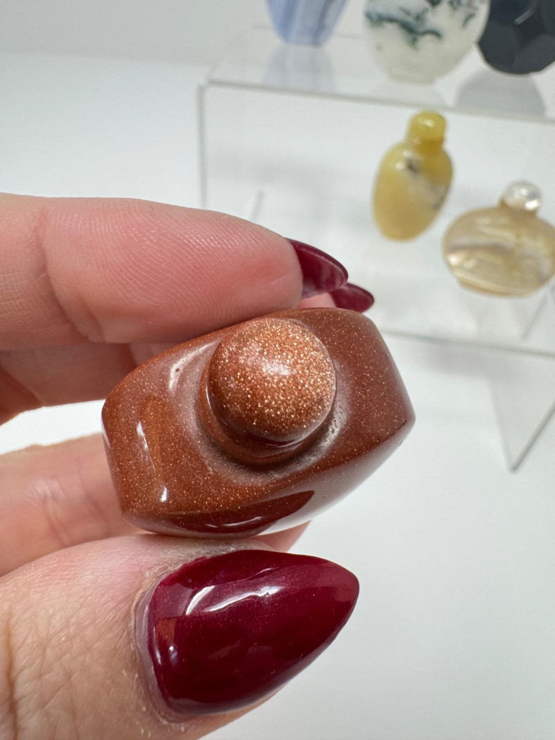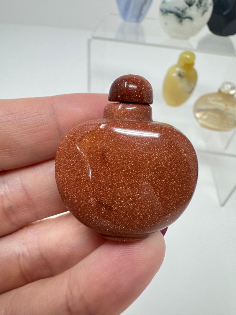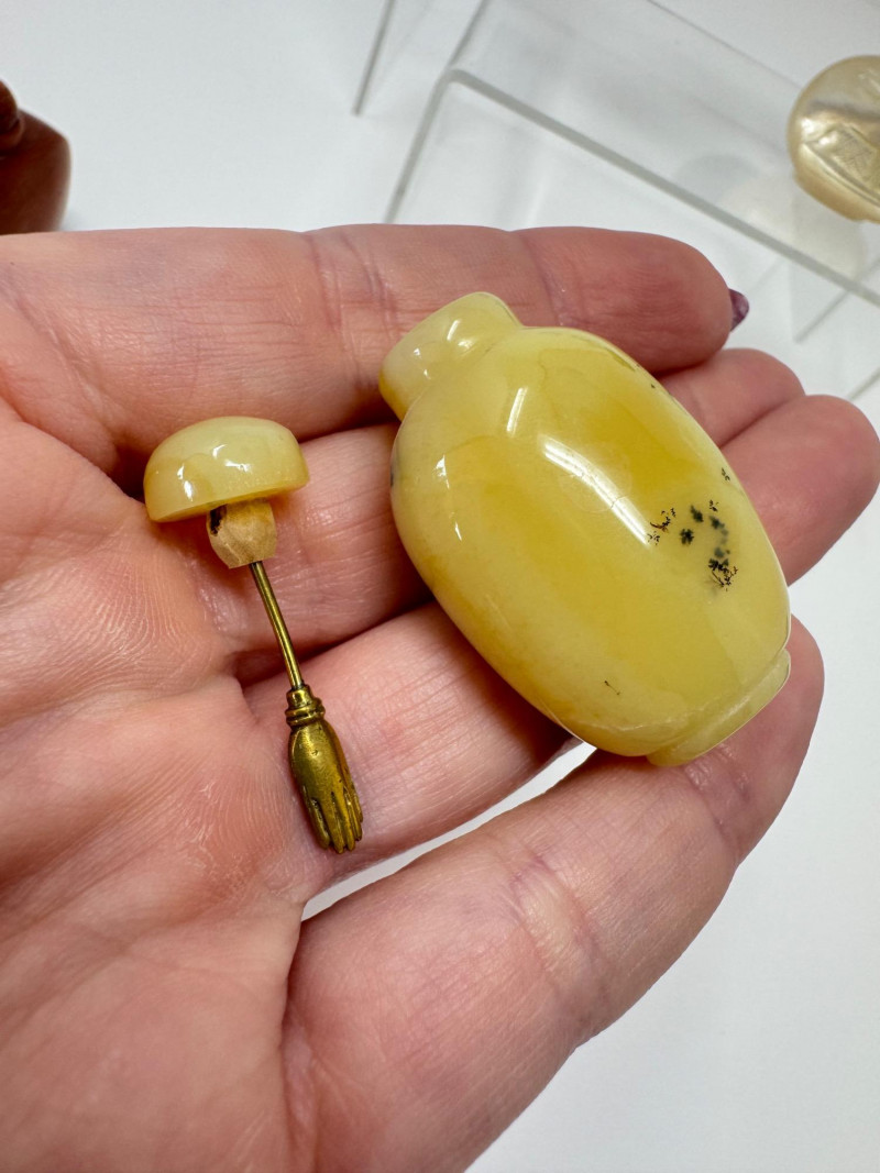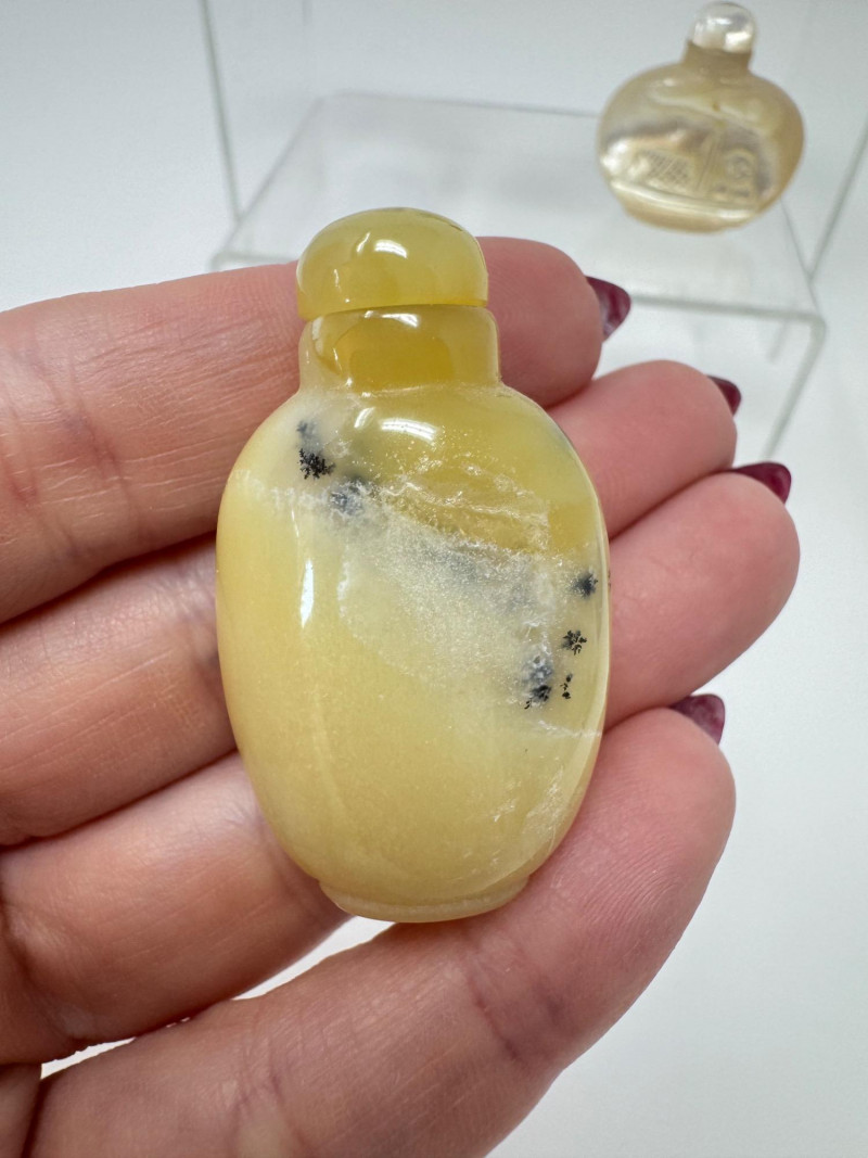 6 Miniature Carved Stone Snuff Bottles – Agate, Onyx, Jade-Like +