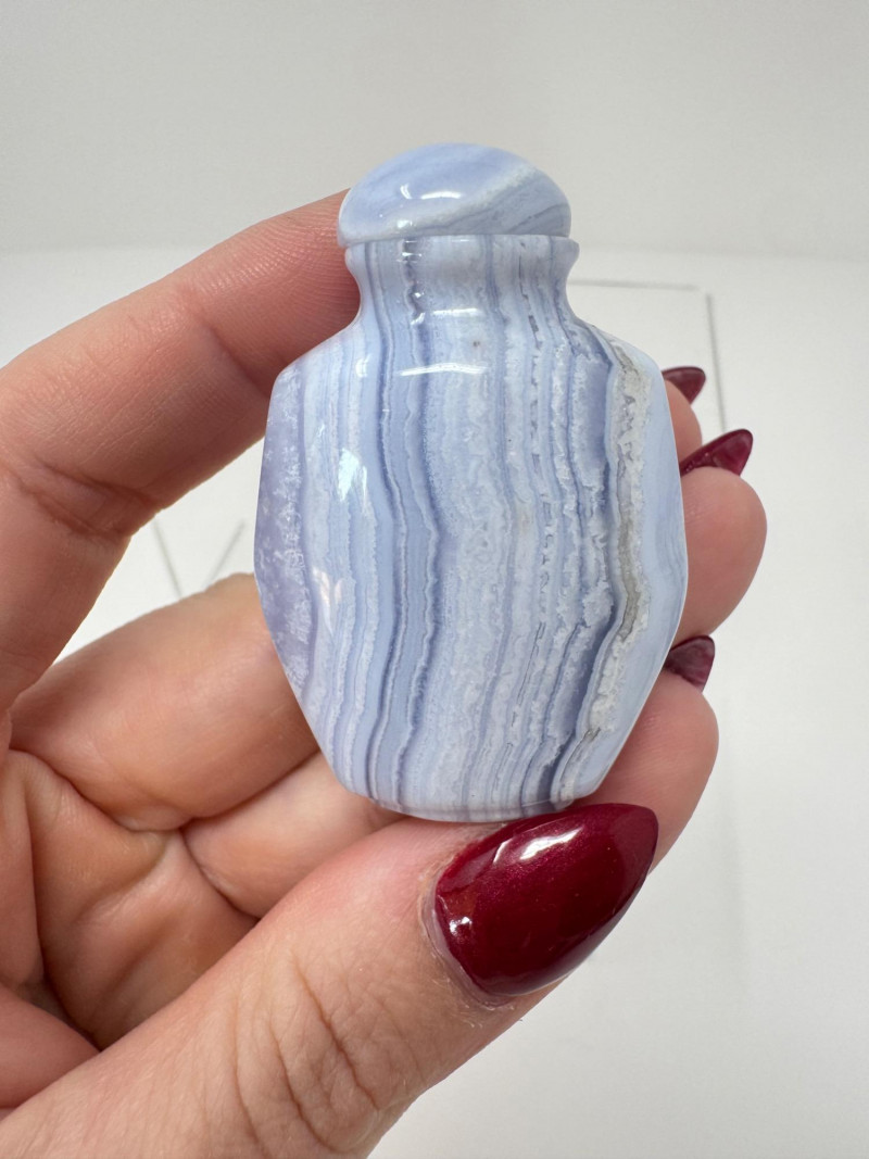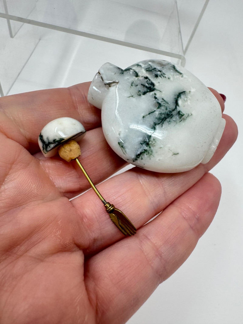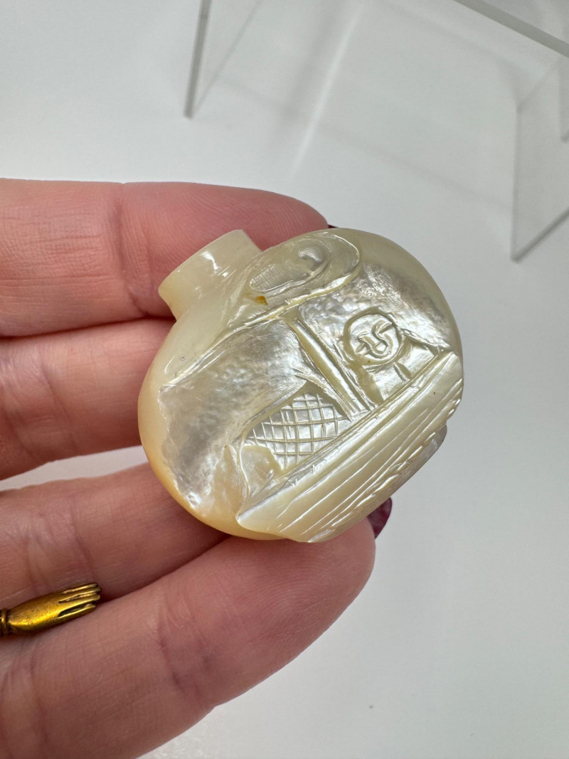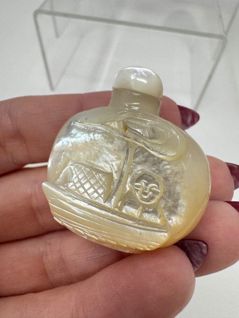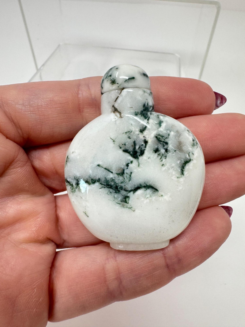 6 Miniature Carved Stone Snuff Bottles – Agate, Onyx, Jade-Like +