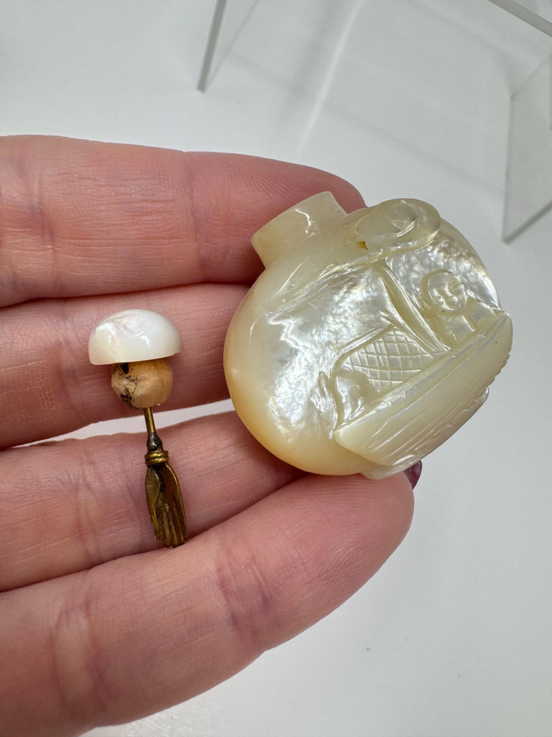 Lot # 52 - 6 Miniature Carved Stone Snuff Bottles – Agate, Onyx, Jade-Like +