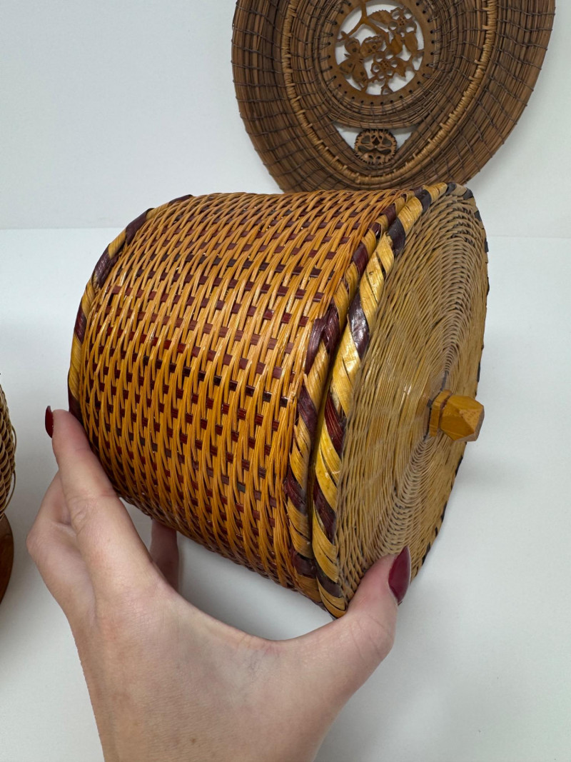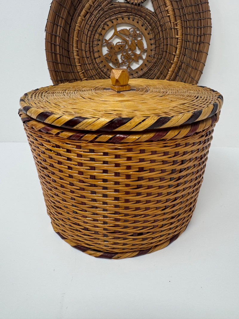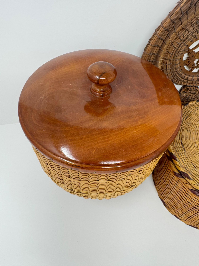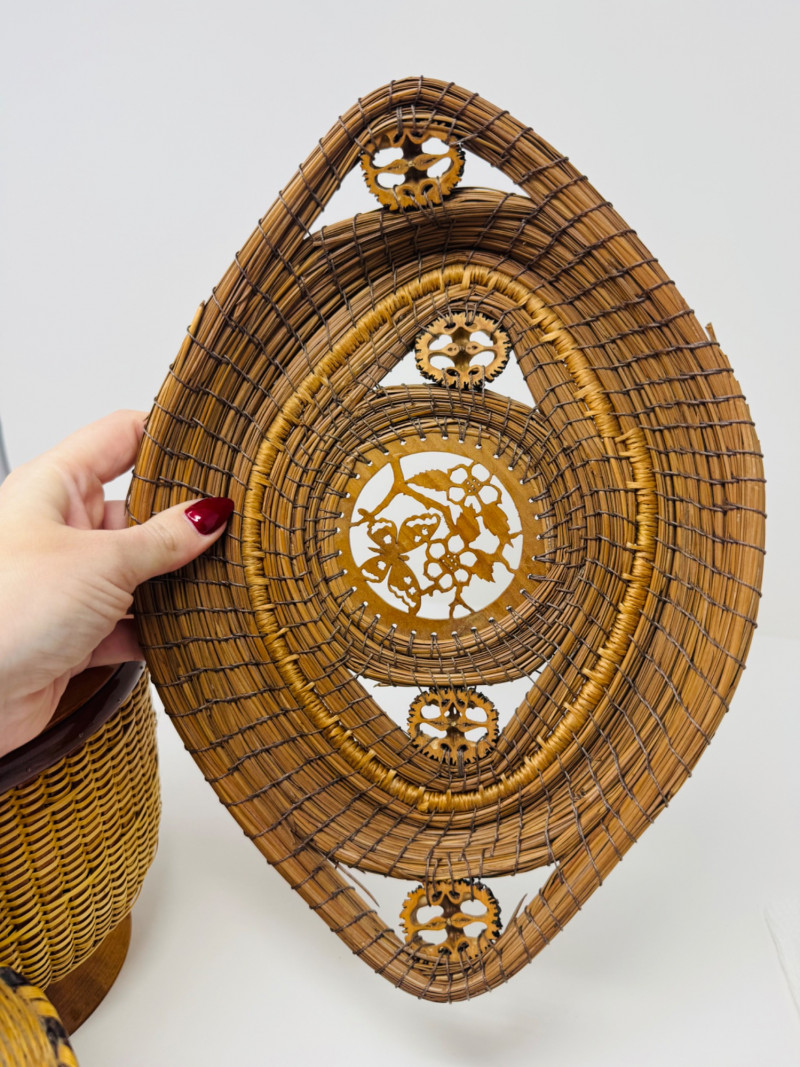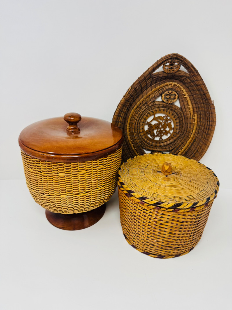 Lot # 62 - 3 Basket Lot – Nantucket Style, Pine Needle Oval & Woven Round