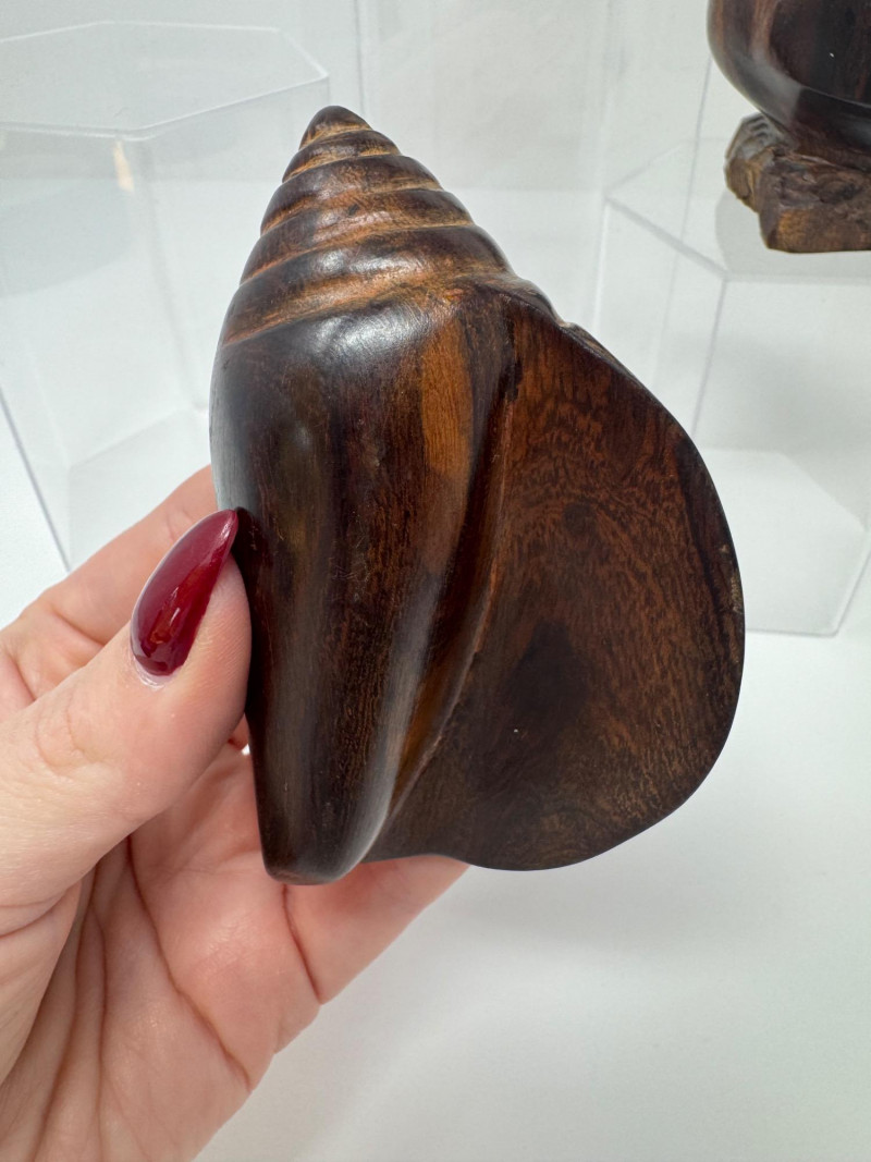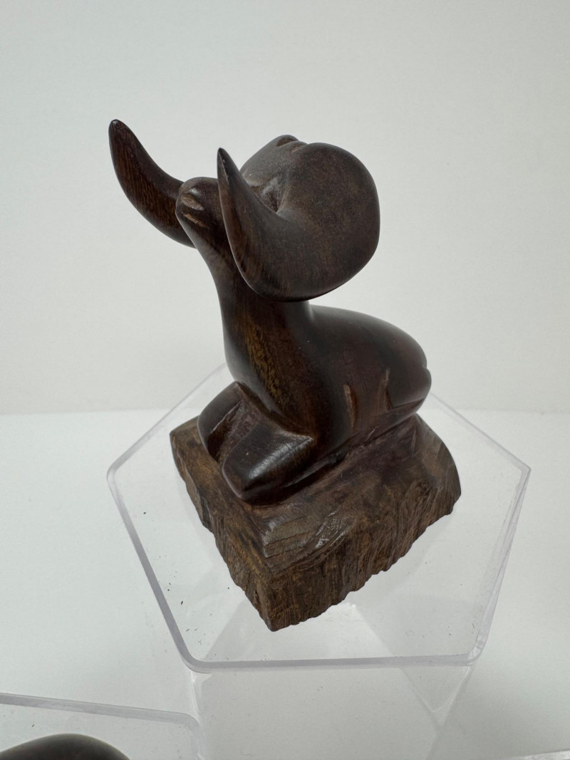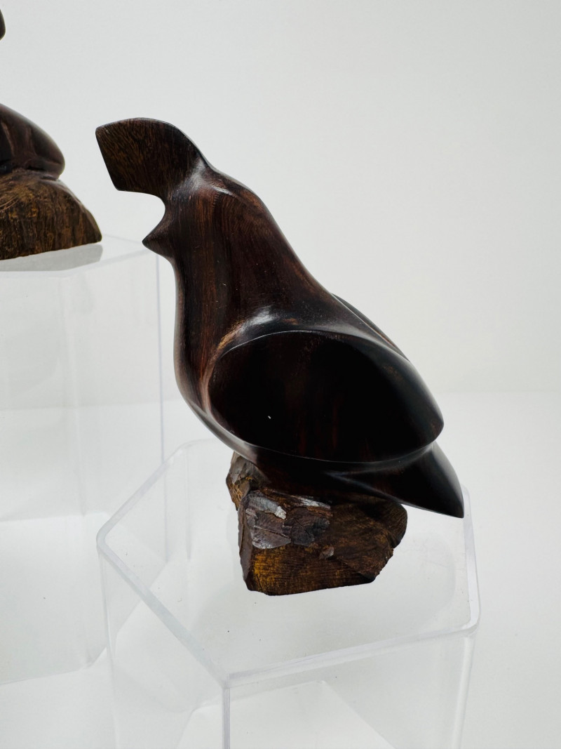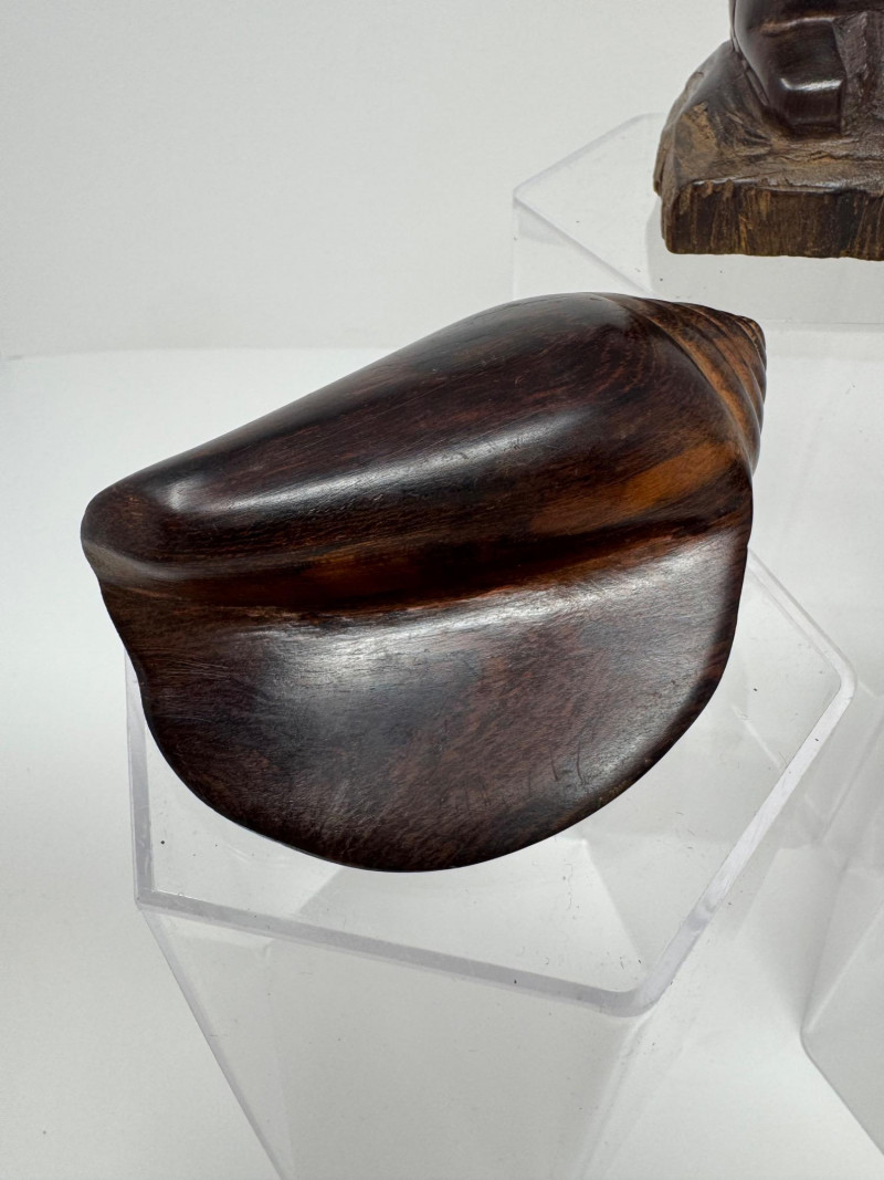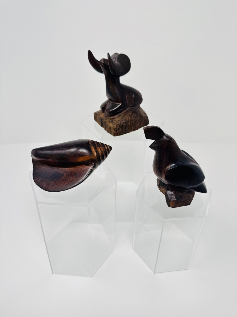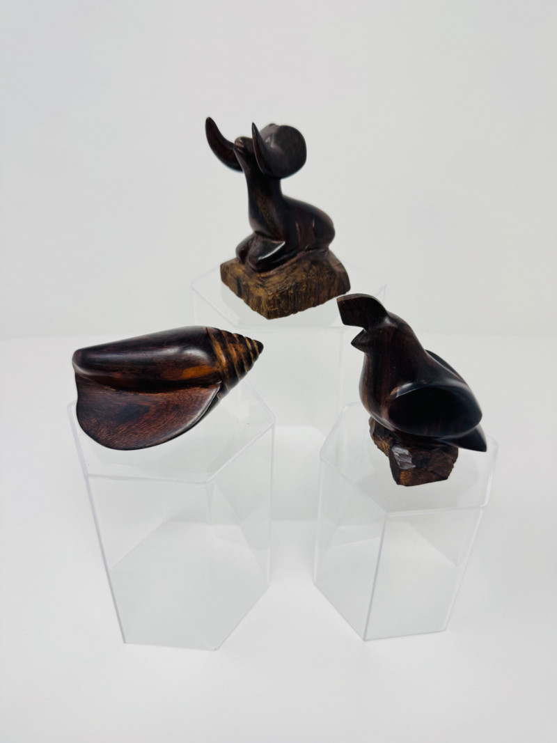 3 Ironwood Carvings – Ram, Conch Shell & Quail Bird – Mexico. 3.5–4” Tall