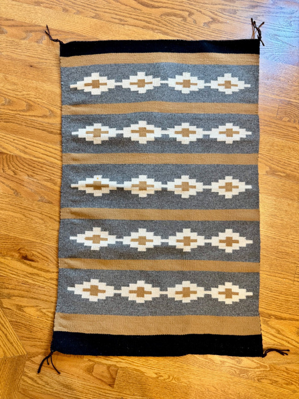Handwoven Wool Rug – Navajo Style Geometric Pattern.