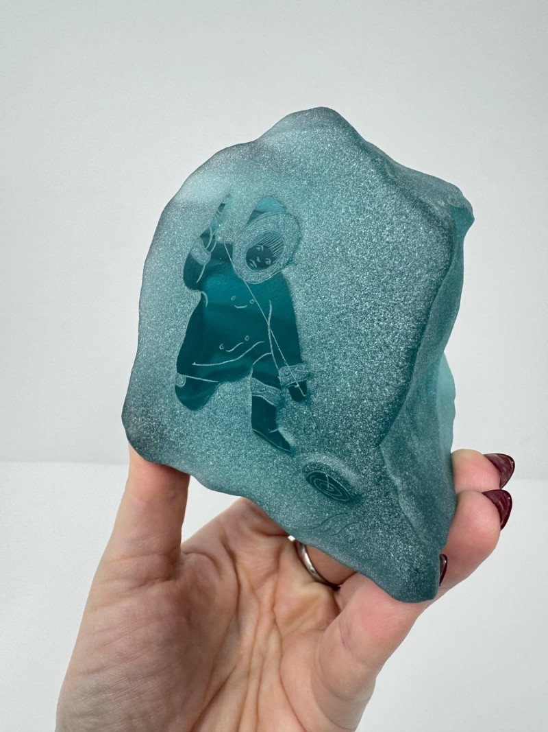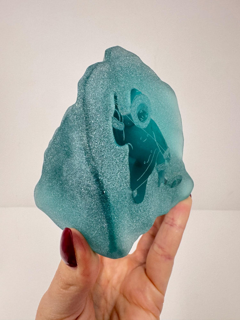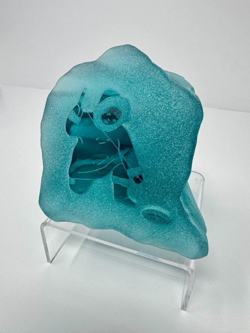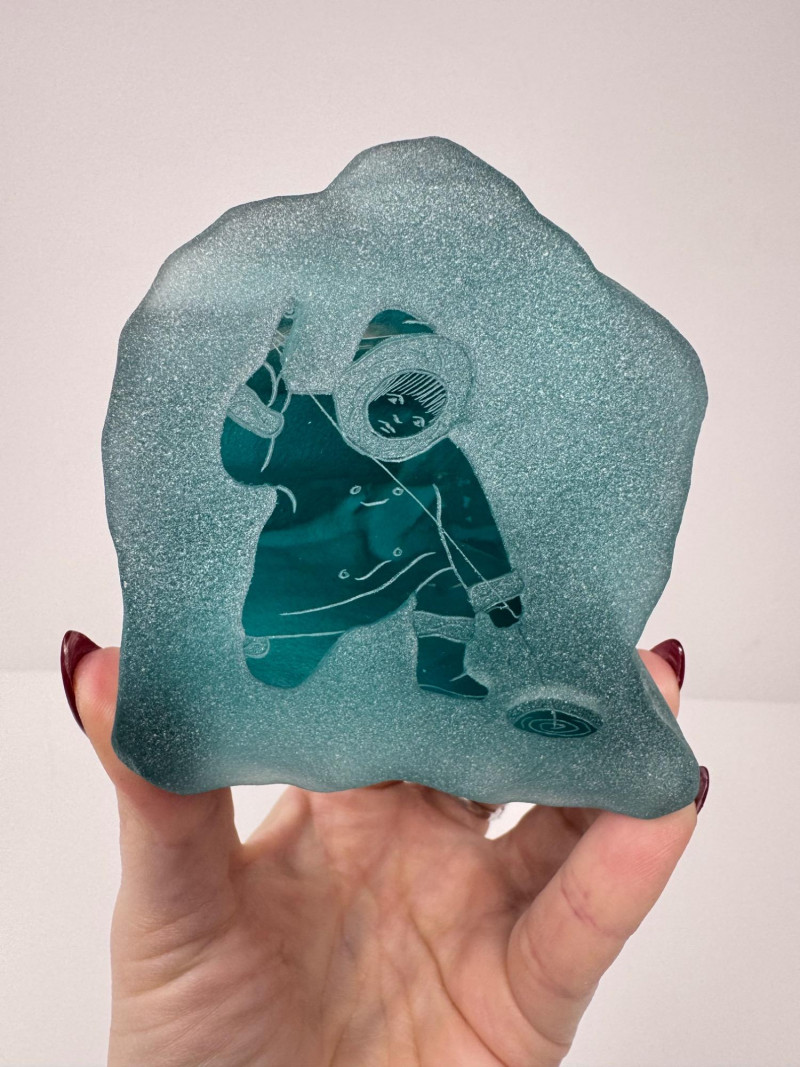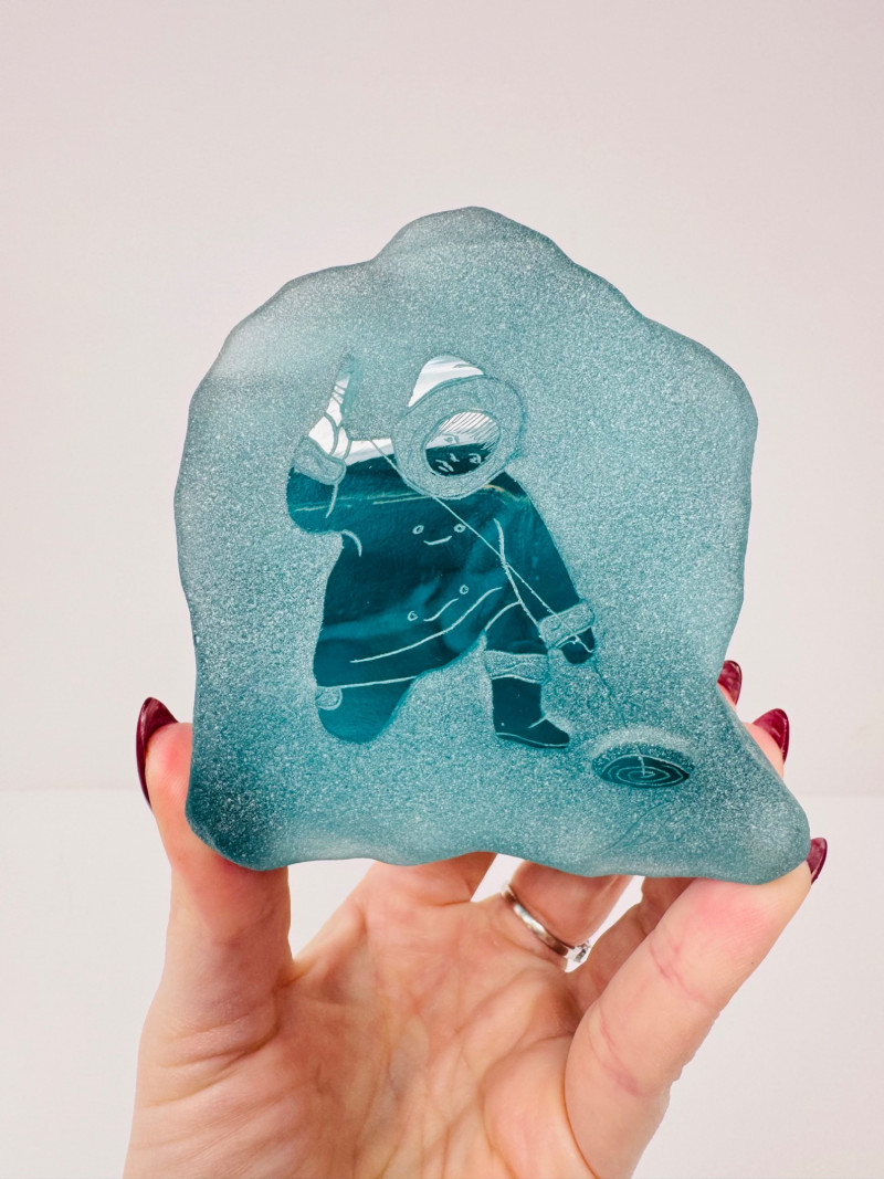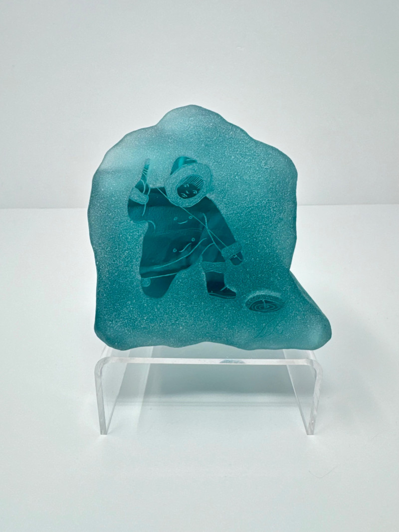 Frosted Glass Sculpture – Inuit Ice Fishing Scene.