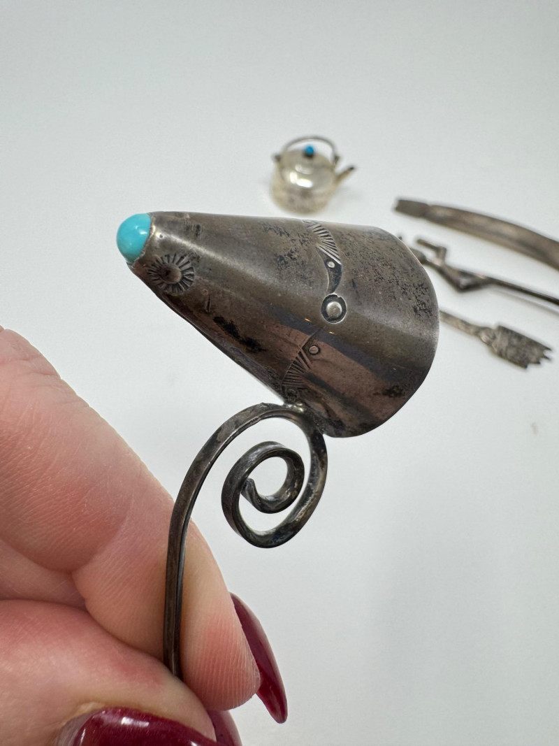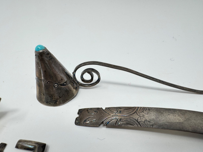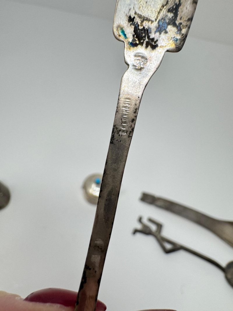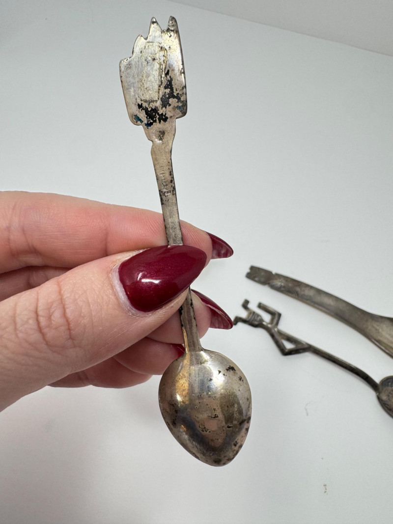 Vintage Sterling Silver Souvenir Spoons & Miniatures - 2 Unmarked. Disclaimer: Sterling and other metals are not tested. Items are sold as is with no guarantees on metal content or purity. No refunds based on metal quality.